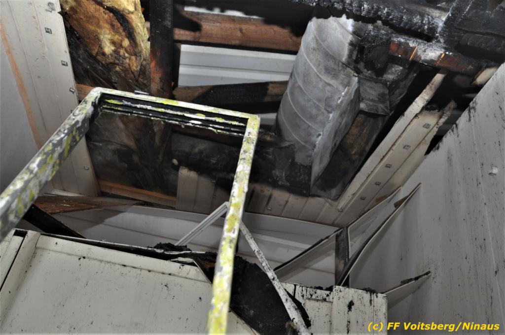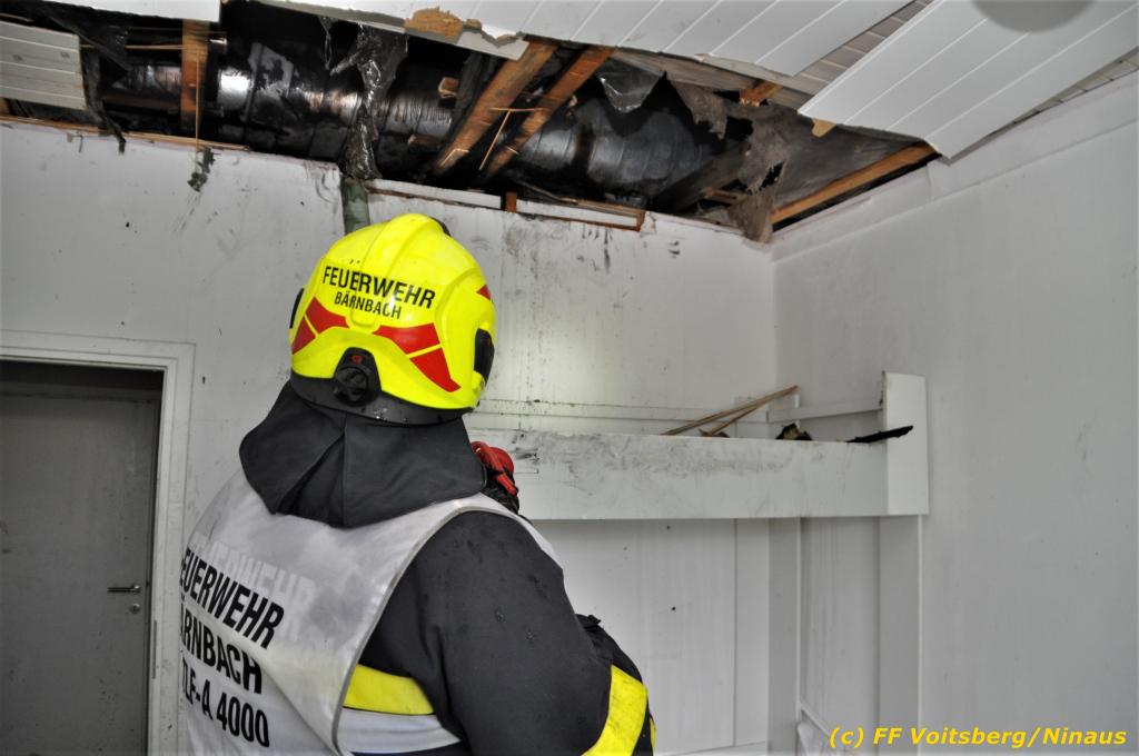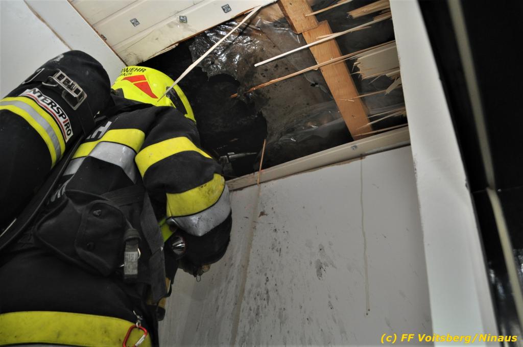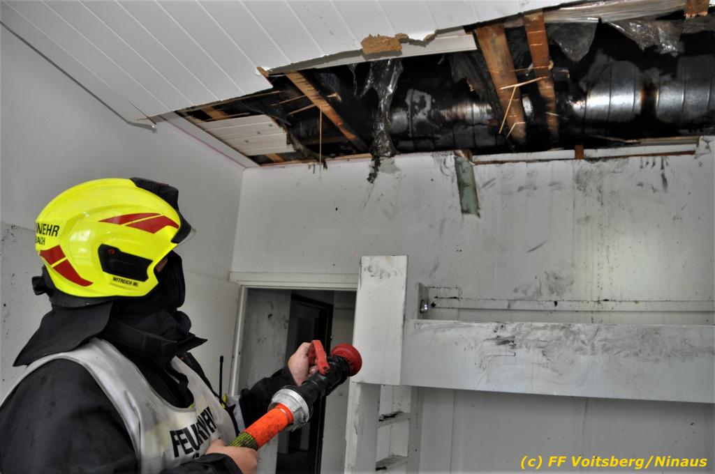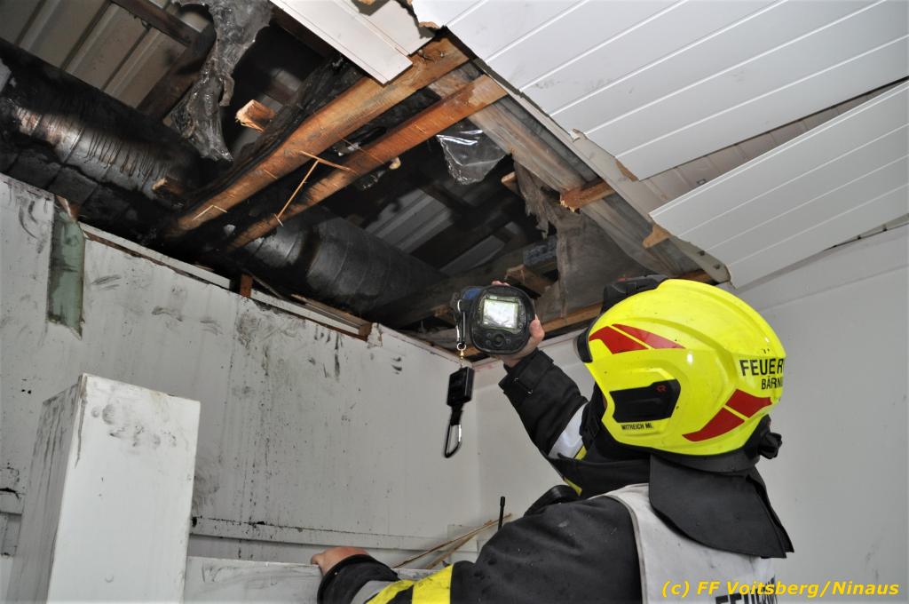 Dabei konnte man die Flammen eindämmen. Da aber in der Zwischendecke das Feuer weiterloderte, musste man diese samt Dämmmaterial zur Gänze abtragen. Gleichzeitig führte man mit der Drehleiter Köflach sowie einer Schiebeleiter Kontrollen am Dach durch. Abschließend wurde der gesamte Brandbereich mit einer Wärmebildkamera kontrolliert. Durch das rasche Eingreifen der Feuerwehren konnte größerer Schaden verhindert werden.