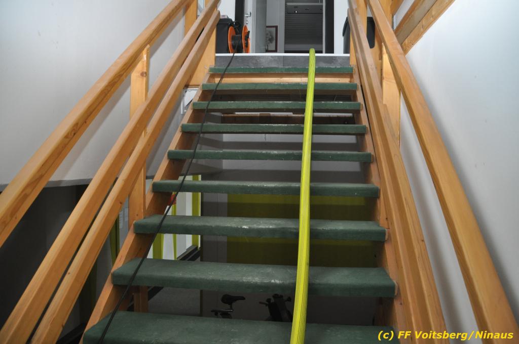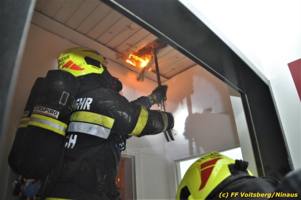 Nach dem Eintreffen der FF Bärnbach und der Erkundung durch den Einsatzleiter ABI Bernd Haller stellte dieser fest, dass im Bereich einer privaten Sauna ein Zwischendeckenbrand ausgebrochen ist. Mit dem neuen Löschsystem C42 LOOP-Schläuchen erfolgte der erste Brandangriff unter schwerem Atemschutz.