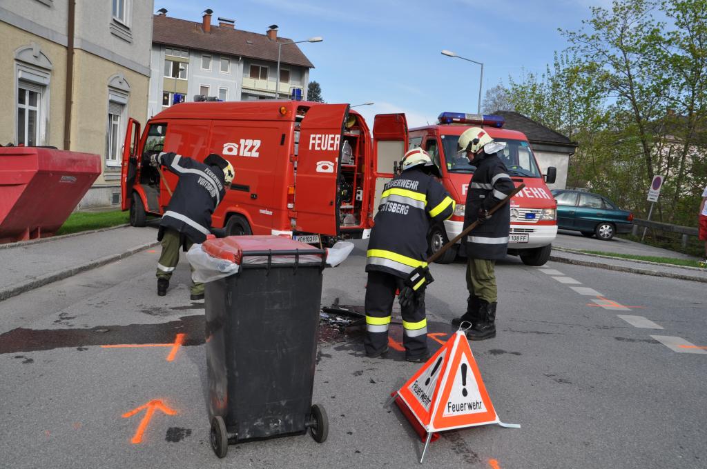 VOITSBERG, am 08.04.2014 Nach Mißachtung der Vorrangregel eines Verkehrsteilnehmers kam es auf der Kreuzung Arnsteinstraße – Dr.Hubert Kravcar-Platz zu einem Zusammenstoß zweier PKW, wobei eine unbestimmten Grades verletzte Person mit dem Roten Kreuz ins LKH Voitsberg eingeliefert wurde. Ausgeflossene Betriebsmittel wurden durch die FF Voitsberg mit Bindemittel gebunden und ein beschädigtes Fahrzeug von der Unfallstelle entfernt. Die polizeilichen Erhebungen wurden von der PI Voitsberg durchgeführt. Die Absicherung der Unfallstelle mit Warntafeln erfolgte seitens des städtischen Bauhofes Voitsberg.