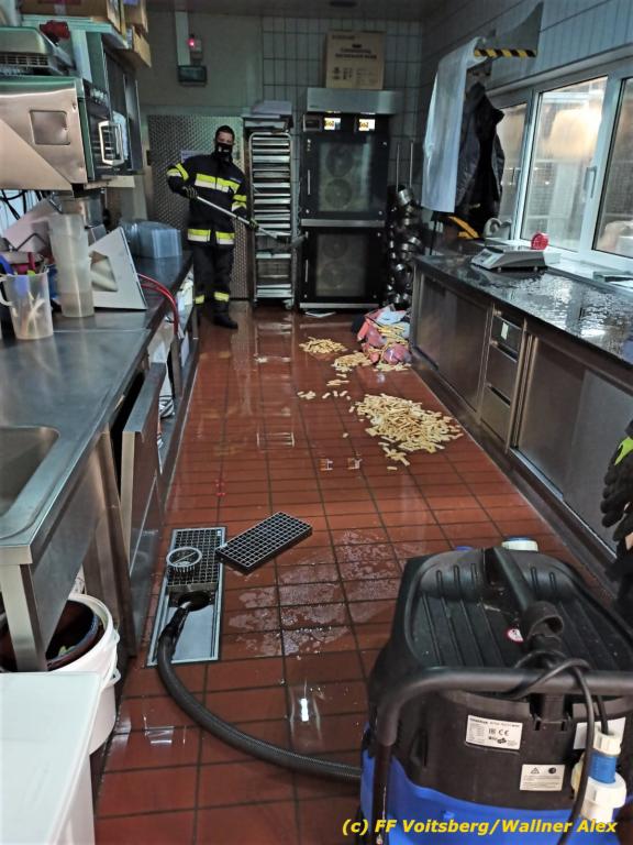 Die alarmierte FF Voitsberg pumpte das Wasser aus den Geschäfts- und Lagerräumen mit Tauchpumpen und Nasssaugern ab, sodass der Geschäftsbetrieb am nächsten Tag wieder unghehindert aufgenommen werden konnte.