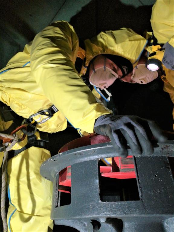 VOITSBERG, am 09.11.2020 Nach einem technischen Ausfall der Sirene am Kirchturm der Michaelskirche in Voitsberg wurde diese von Kameraden der FF Voitsberg abgebaut, reperiert und wieder unter schwierigen Bedingungen montiert.