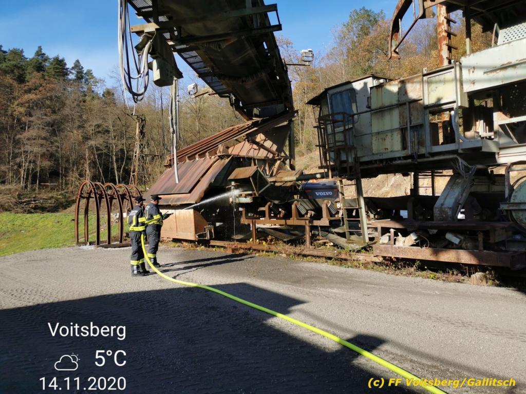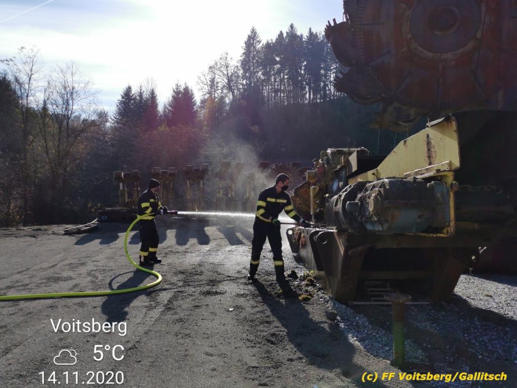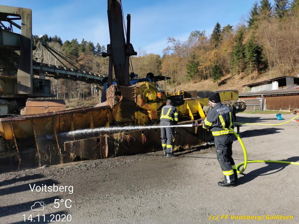 VOITSBERG, am 14.11.2020 Die Stadtgemeinde Voitsberg trat an die FF Voitsberg mit der Bitte heran, den im Energie-Erlebnispark Zangtal stationierten Schaufelradbagger Leopold zu reinigen.