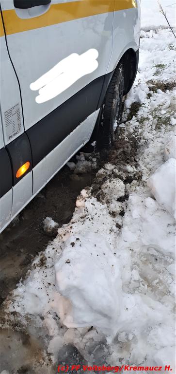 VOITSBERG, am 10.12.2020 Ein Klein-Lkw steckte am Donnerstag, 10. Dezember 2020 in den Morgenstunden am Blickweg in Voitsberg nach einem Umkehrmanöver in einer Wiese fest und konnte nicht weiterfahren.