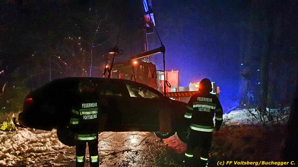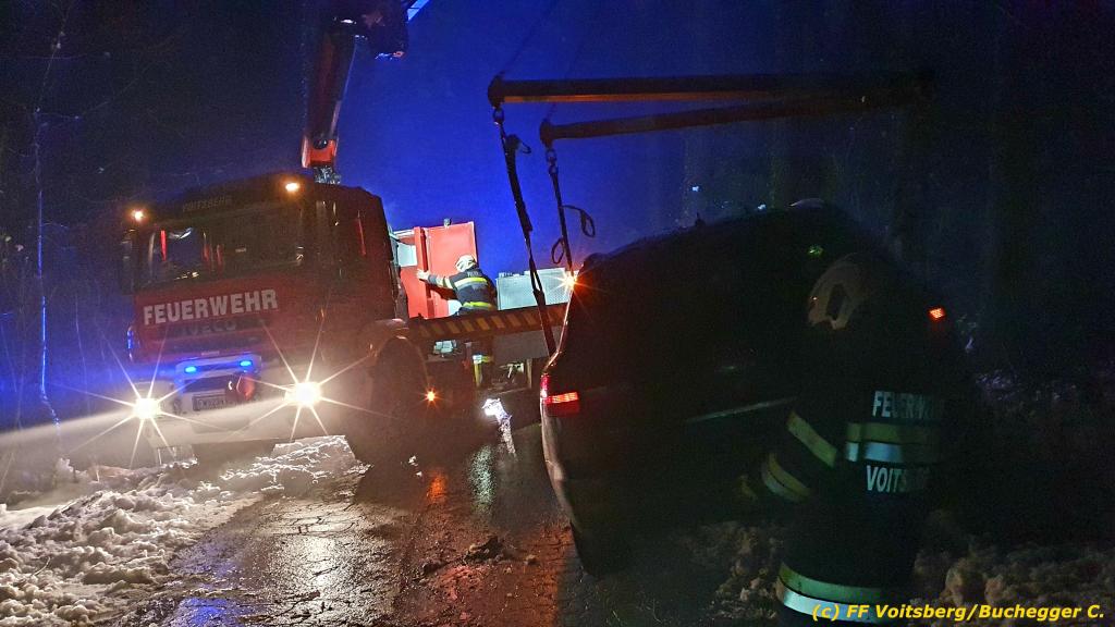 VOITSBERG, am 12.12.2020 Die FF Voitsberg wurde am 12.12.2020 kurz vor 01:30 Uhr zu einer Fahrzeugbergung in die Kowaldstraße in Voitsberg alarmiert.