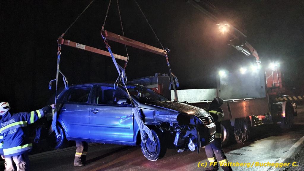 VOITSBERG, am 30.12.2020 Die FF Voitsberg wurde am 30.12.2020 um 01:17 Uhr zu einer Fahrzeugbergung auf die B70 Umfahrung Voitsberg alarmiert.