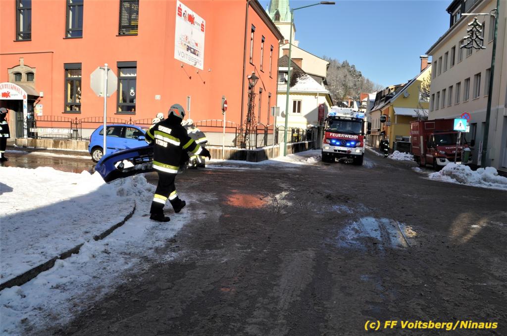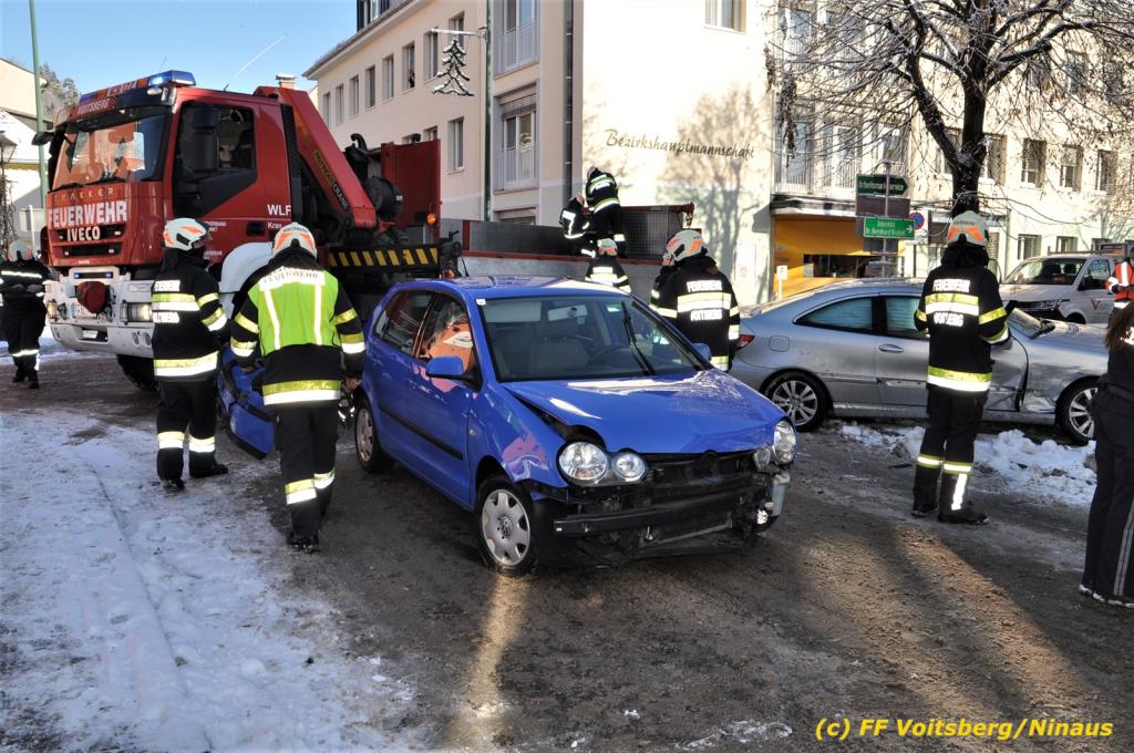 VOITSBERG, am 11.01.2021 Die FF Voitsberg wurde am Montag, 11.Jänner 2021 um 11:24 Uhr zu einem Verkehrsunfall zur Kreuzung Bahnhofstraße-Schillerstraße Nähe der BH Voitsberg alarmiert.