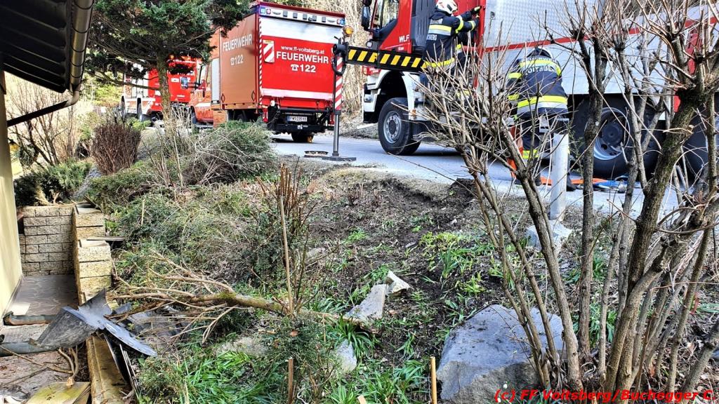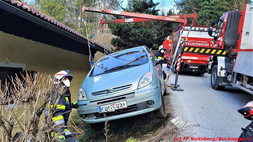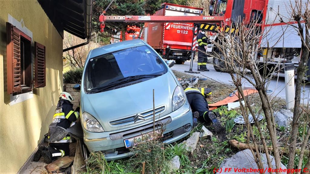 VOITSBERG, am 08.04.2021 Ein Pkw geriet am Donnerstag, 8. April 2021 in den Nachmittagsstunden aus unbekannter Ursache von der Lucknerstraße in Bärnbach ab und kam kurz vor einem Wohnhaus zu stehen.