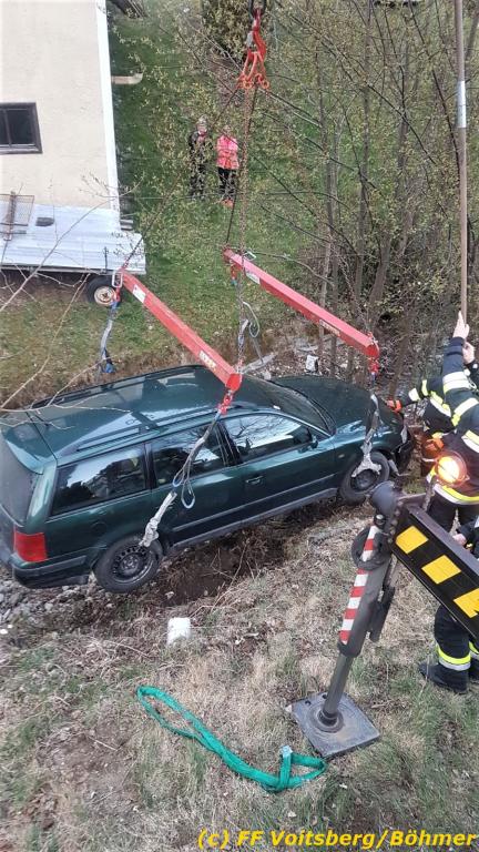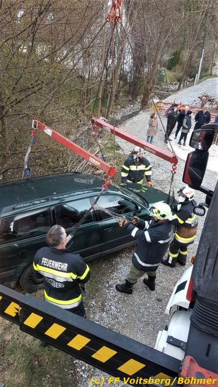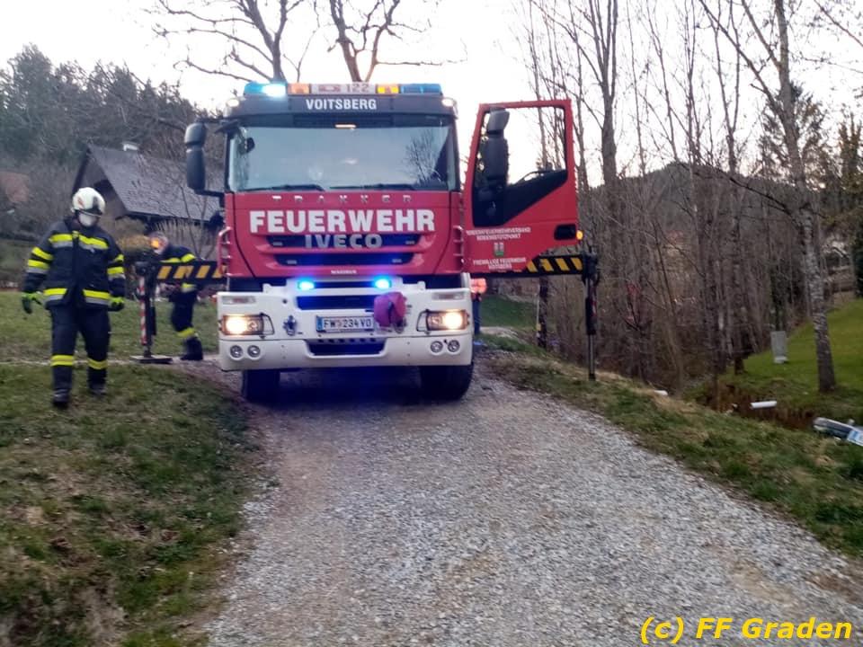 VOITSBERG, am 15.04.2021 Die FF Voitsberg wurde am Donnerstag, 15. April 2021 um 18:28 Uhr von der einsatzleitenden Feuerwehr Graden zu einer Fahrzeugbergung mit dem WLF-Kran alarmiert.