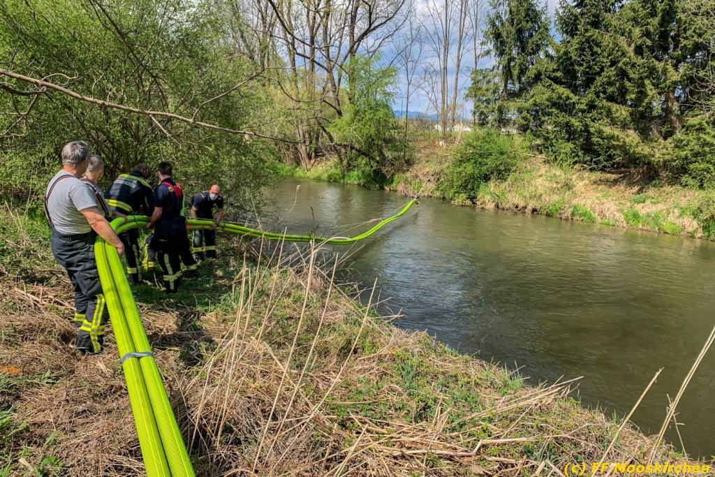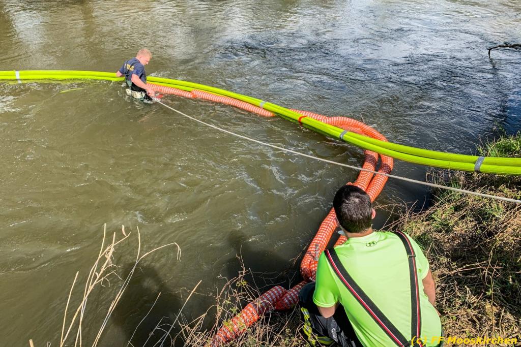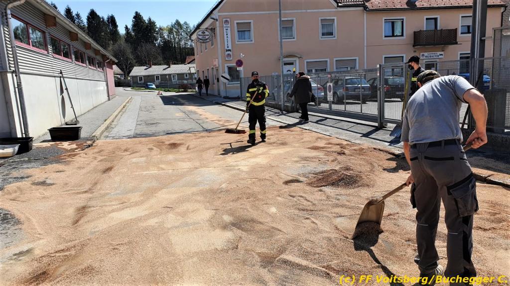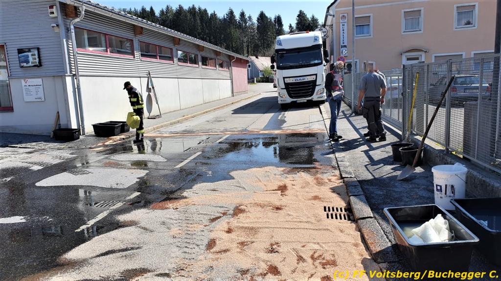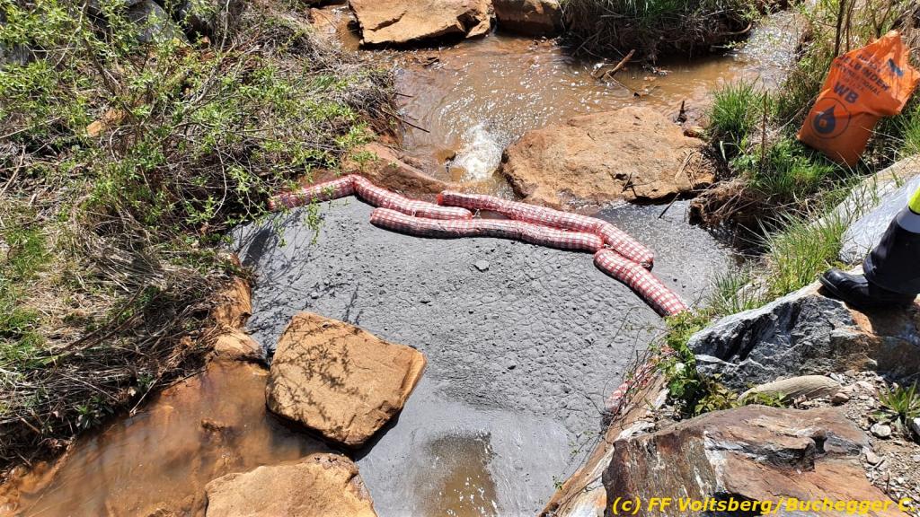 Zwecks Unterstützung wurden die Feuerwehren Hallersdorf und Mooskirchen alarmiert, welche in ihren Einsatzbereichen ebenfalls Ölsperren anbrachten. Seitens der Behörde wurde der Ölalarmdienst des Landes Steiermark verständigt, welcher auch die weiteren Maßnahmen anordnete. Eine Spezialfirma saugte das getränkte Bindemittel ab und entsorgte dieses fachgerecht. Die Schadenshöhe ist unbekannt. Der Einsatz dauerte ca. 6 Stunden.