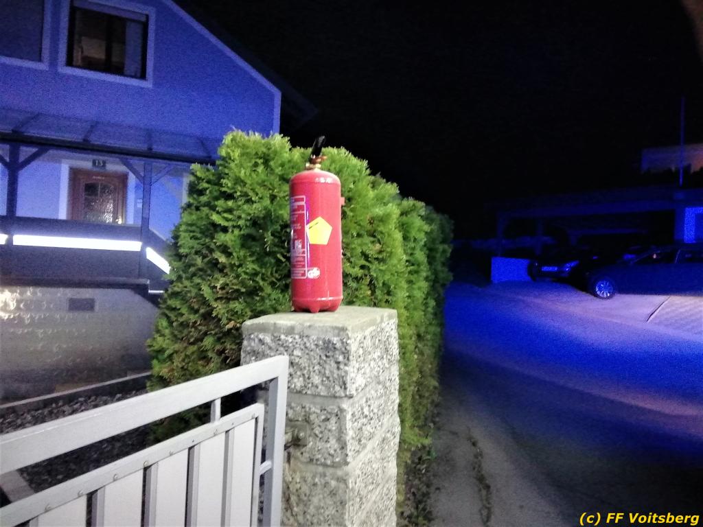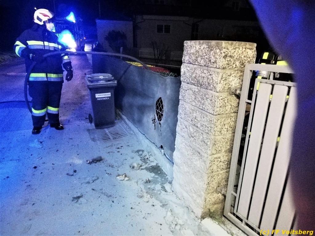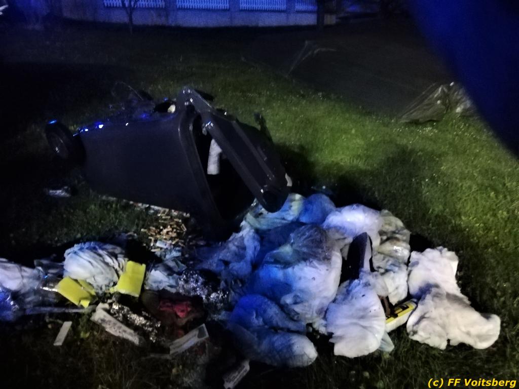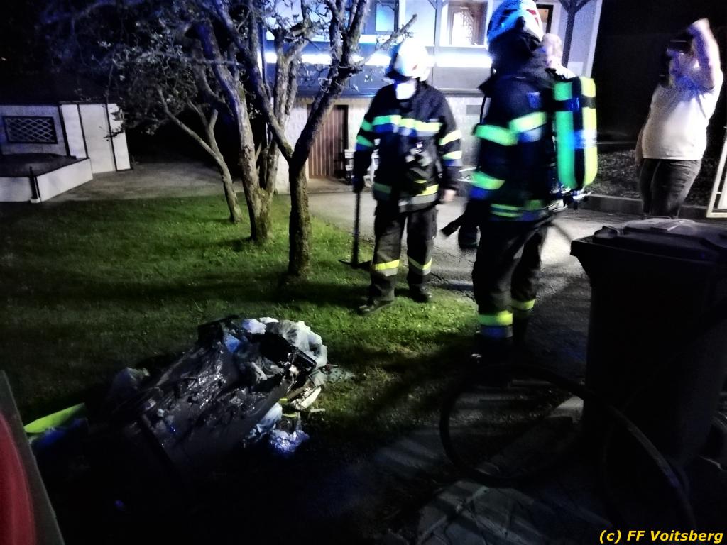 Bei Eintreffen stellte der Einsatzleiter fest, dass der Müllcontainer vom Besitzer und Nachbarn mit Pulverlöschern bereits gelöscht wurde. Die FF Voitsberg führte Nachlöscharbeiten durch. Es entstand geringer Sachschaden.