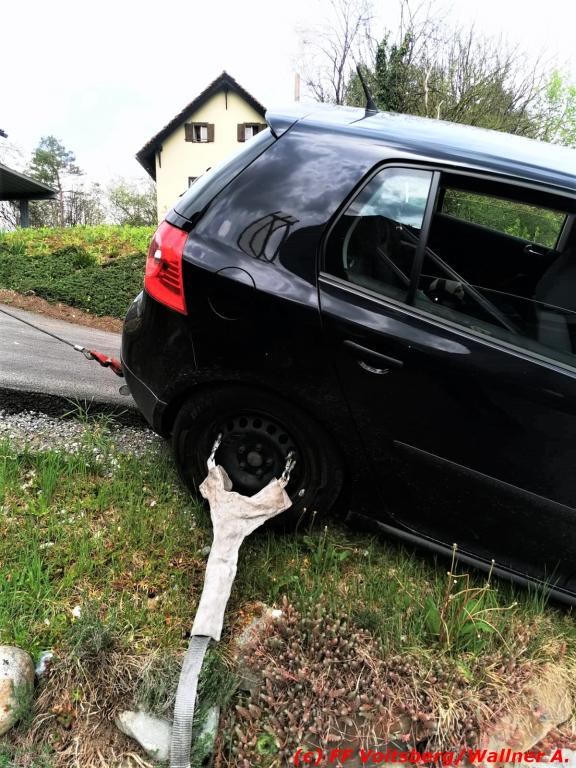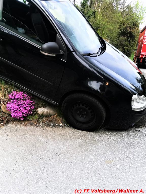 VOITSBERG, am 01.05.2021 Ein Pkw geriet am Samstag, 1. Mai 2021 in den Nachmittagsstunden in der Margarethengasse in Voitsberg aus unbekannten Gründen über eine Böschung und drohte umzustürzen.