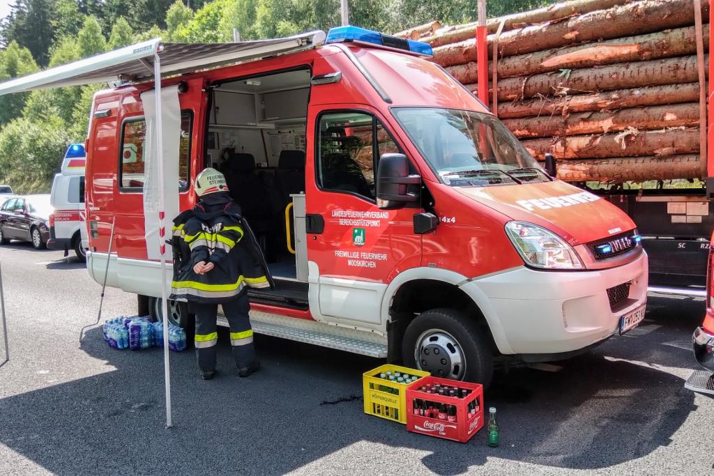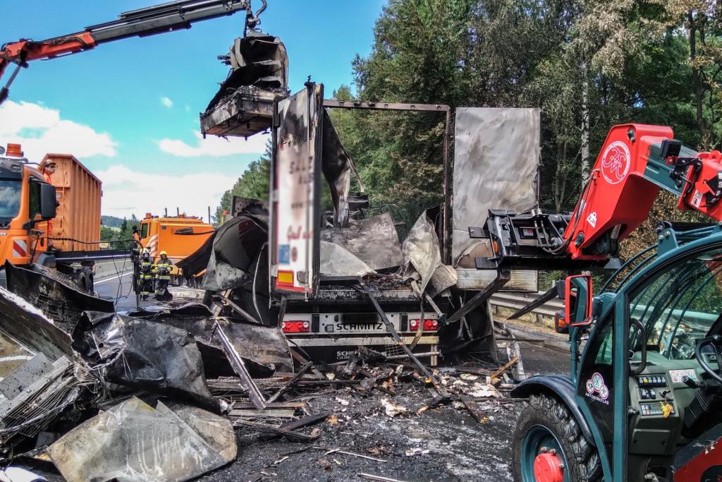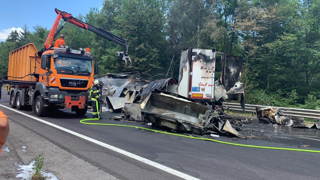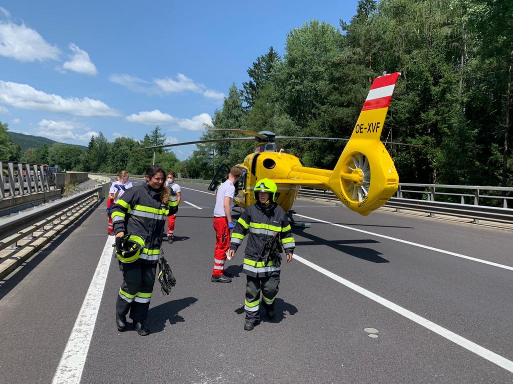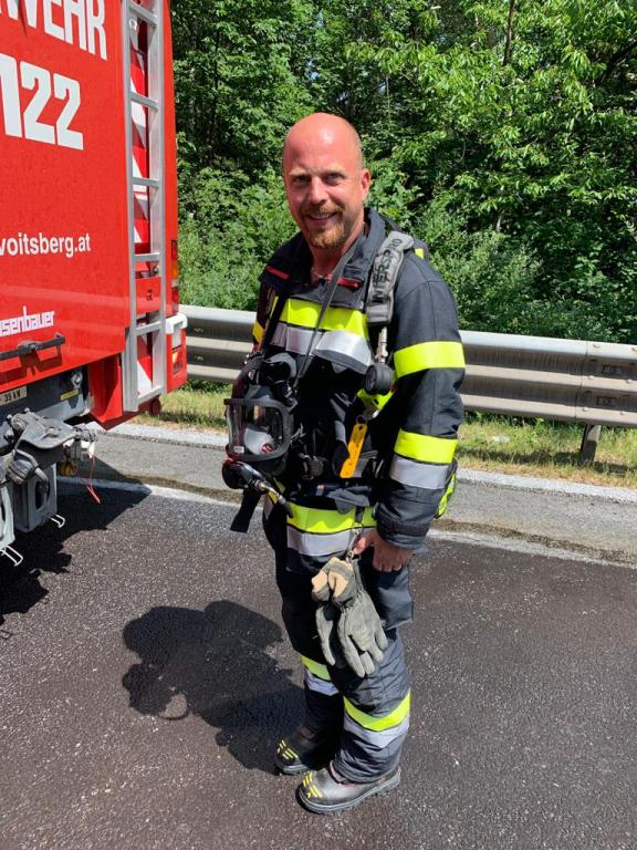 Aus bisher noch ungeklärter Ursachen fuhr ein Lenker eines Sattelschleppers auf einen LKW der Asfinag auf, die gerade in einem abgesicherten Bereich mit Mäharbeiten beschäftigt waren. Nachkommende Zivilpersonen versuchten mit Feuerwehrlöschern den Brand zu löschen und befreiten den Lenker des Sattelschleppers aus seinem Fahrzeug. Beim Eintreffen der Einsatzkräfte stand der Sattelschlepper bereits im Vollbrand.