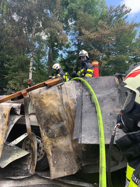 VOITSBERG, am 19.07.2021 Aufgabe der FF Voitsberg war die Wasserversorgung von HLF Lieboch sowie Restlöscharbeiten beim ausgebrannten Lkw