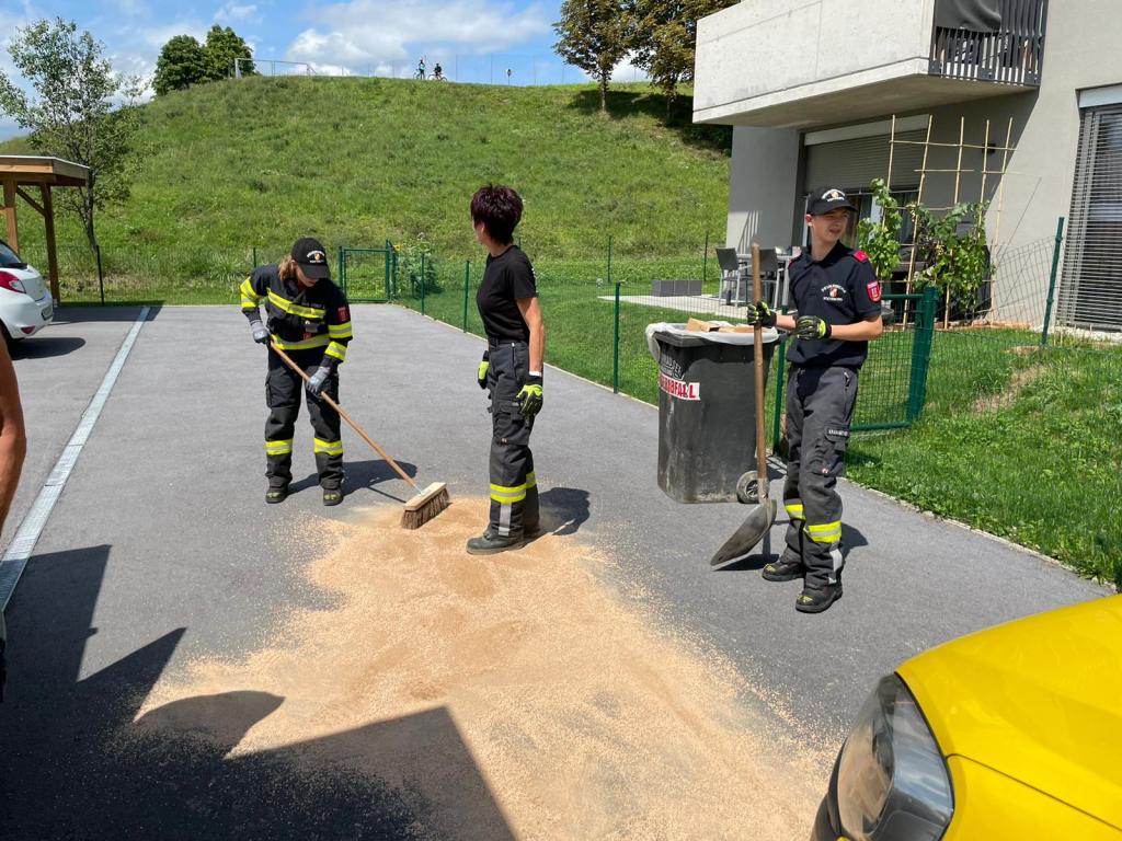 VOITSBERG, am 09.08.2021 Die FF Voitsberg wurde am Montag, 9. August 2021 um 12:45 Uhr in die Barbarastraße in Voitsberg alarmiert, nachdem bei einem Pkw aus technischen Gründen Schmiermittel auf die Fahrbahn gelangten.