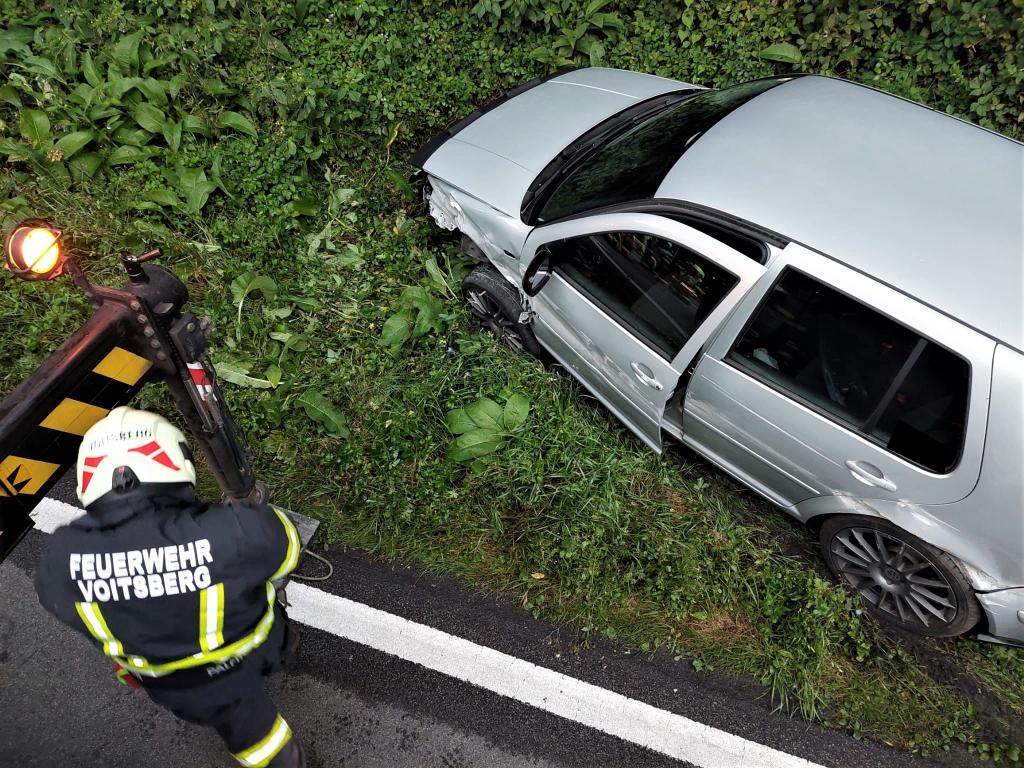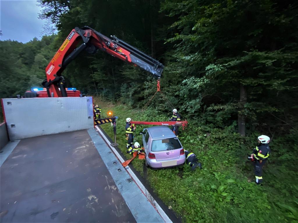 VOITSBERG, am 28.08.2021 Über Anforderung der einsatzleitenden Feuerwehr Krems wurde die FF Voitsberg am Samstag, 28. August 2021 um 19:15 Uhr zwecks Bergung eines verunfallten Fahrzeuges mit dem WLF-Kran in die Kremser Reihen alarmiert.