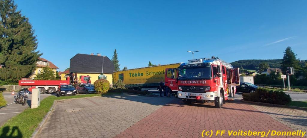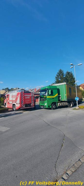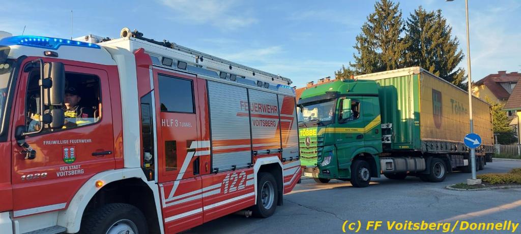 VOITSBERG, am 01.09.2021 Die FF Voitsberg wurde am Mittwoch, 1. September 2021 um 17:05 Uhr zu einem Einsatz in die Kowaldstrasse in Voitsberg alarmiert. Ein Sattelschlepper blockierte aufgrund eines technischen Gebrechens in der Kowaldstrasse die Eisenbahnkreuzung, sodass diese nicht passierbar war. Der Zugverkehr war nicht betroffen. Die FF Voitsberg überbrückte das Problem, indem seitens des HLF 4 – Kompressors der Lkw mit Luft versorgt wurde. Das Fahrzeug wurde über Anordnung der Polizei zu einem Abstellplatz in ein Firmengelände geschleppt. Nach über 2 Stunden konnte die Straße wieder freigegeben werden. Eingesetzt unter Einsatzleiter Alexander Wallner waren insgesamt 6 Einsatzkräfte der FF Voitsberg sowie eine Streife der Polizei Voitsberg. Text: FF Voitsberg/Ninaus Fotos: FF Voitsberg/Donnelly