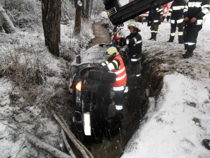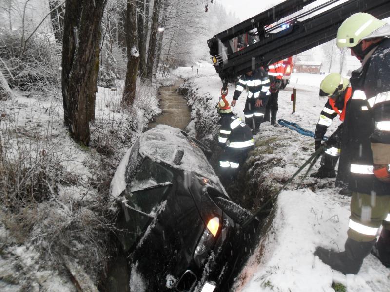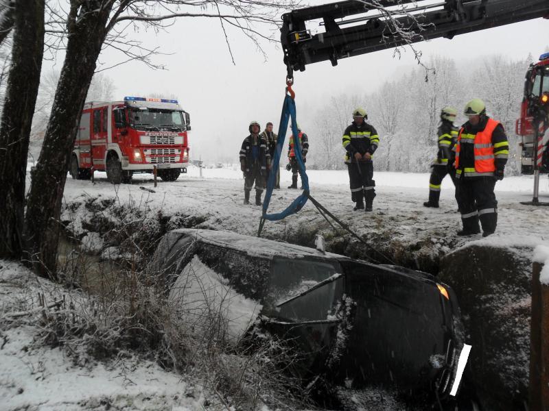 Über Anforderung der FF Södingberg rückte WLF-Kran zu einer Fahrzeugbergung nach Södingberg aus