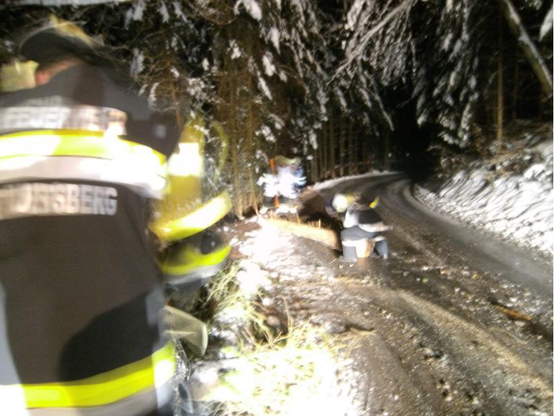 Schneebruch - Baum über Straße