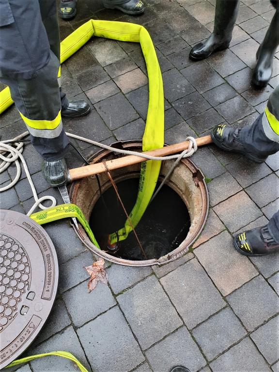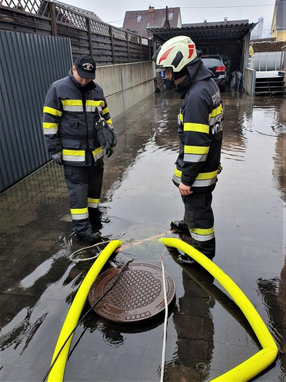 Aufgrund einer defekten Pumpe im Regenwasserkanal stieg der Grundwasserspiegel stark an und überflutete die Einfahrt eines Einfamilienhauses rund 20 cm hoch. Ebenfalls drangen die Wassermassen in den Keller ein.