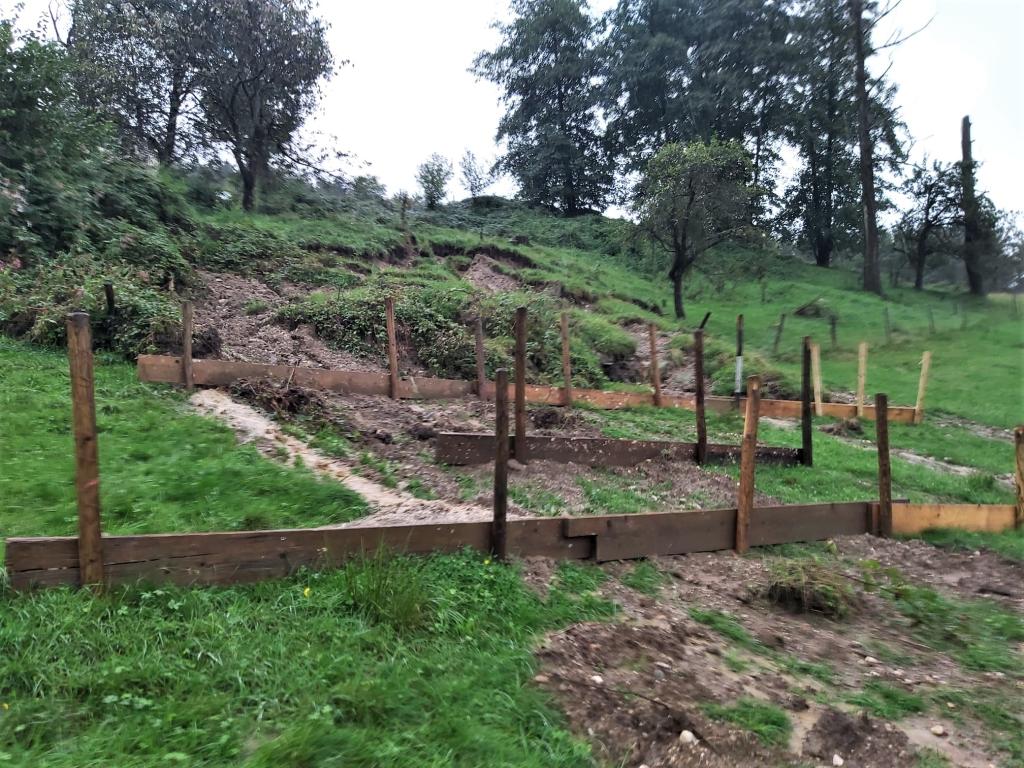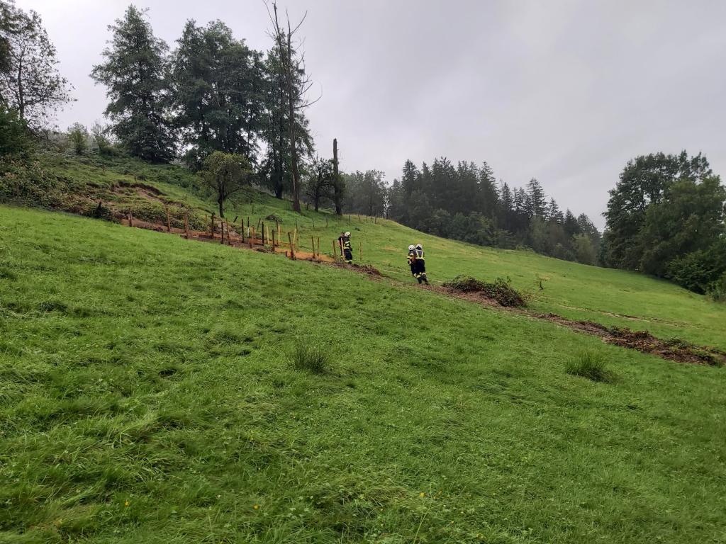 Die FF Voitsberg führte Sicherungsarbeiten in Form von Erweiterungen des geordneten Wasserabflusses, das Setzen einer Oberflächenbefestigung sowie das Abdecken von Teilen des Hanges mit Planen durch.