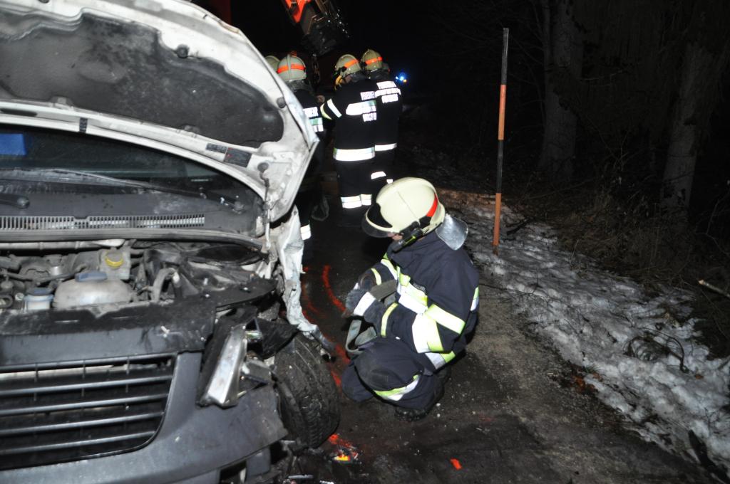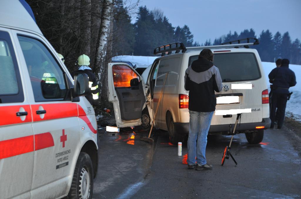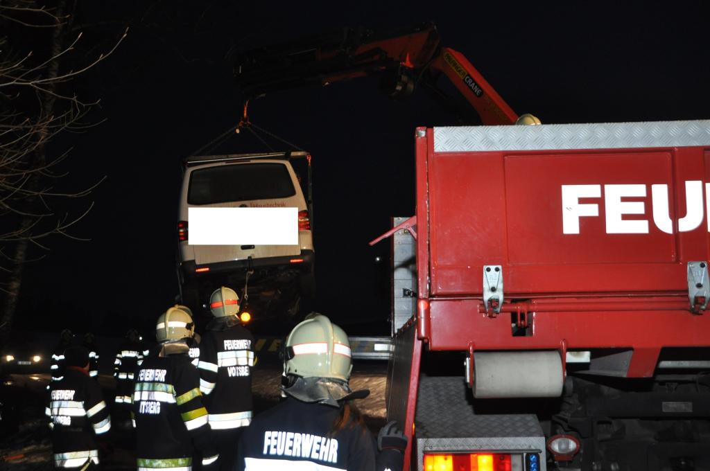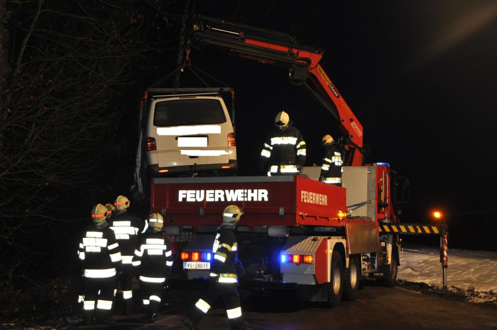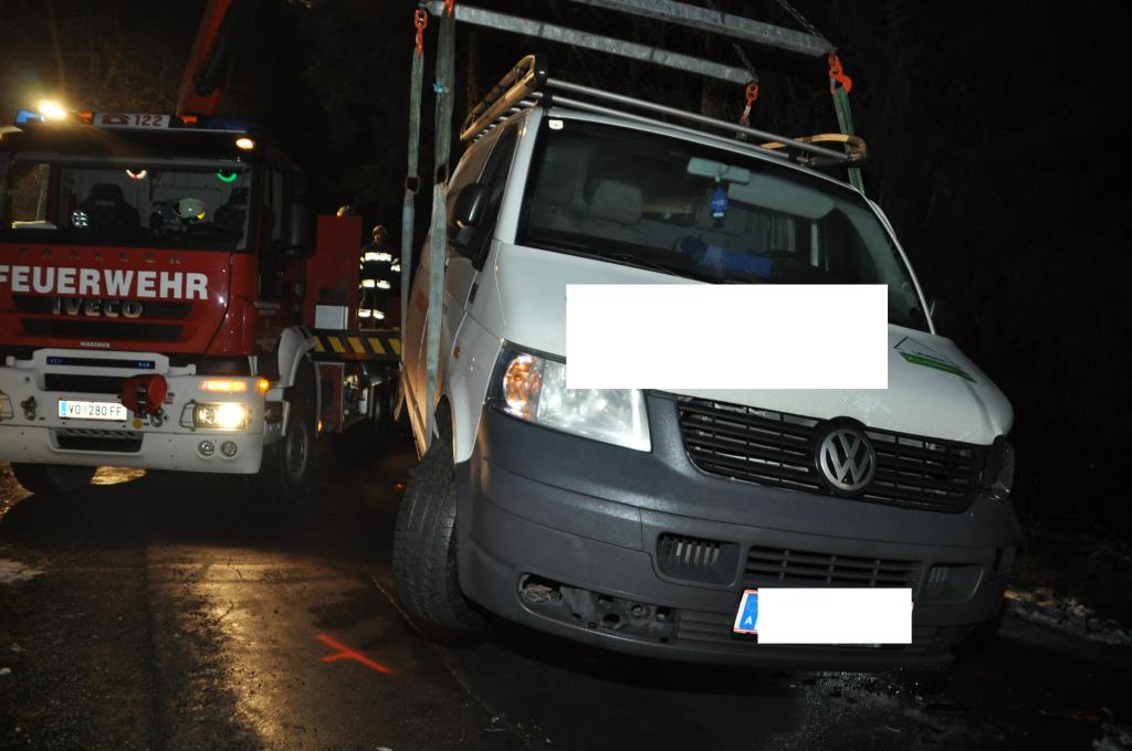 VOITSBERG, am 03.01.2015 Nach einem Frontalzusammenstoß eines Transporters mit einem PKW konnte sich eine im PKW befindliche, unbestimmten Grades verletzte Person nicht aus dem Fahrzeug befreien. Sie wurde in Zusammenarbeit zwischen der FF Voitsberg und dem Roten Kreuz Voitsberg aus dem Wagen gerettet, erstversorgt und in das LKH Voitsberg eingeliefert. Der Lenker des Kleintransporters konnte sich selbst aus dem Fahrzeug befreien und flüchtete. Die Fahrzeuge wurden mittels WLF-Kran von der Unfallstelle gebracht und die herumliegenden Wrackteile geborgen und entsorgt. Die Polizei Voitsberg führte die Erhebungen durch.