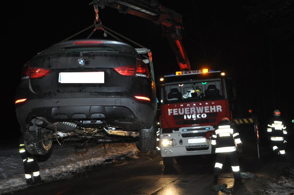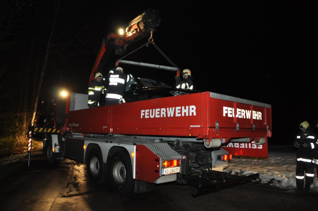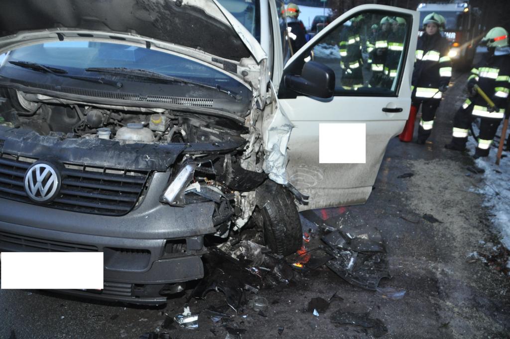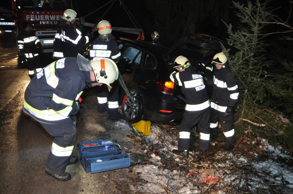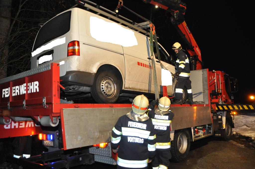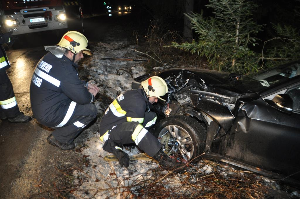 VOITSBERG, am 03.01.2015 Nach einem Frontalzusammenstoß eines Transporters mit einem PKW konnte sich eine im PKW befindliche, unbestimmten Grades verletzte Person nicht aus dem Fahrzeug befreien. Sie wurde in Zusammenarbeit zwischen der FF Voitsberg und dem Roten Kreuz Voitsberg aus dem Wagen gerettet, erstversorgt und in das LKH Voitsberg eingeliefert. Der Lenker des Kleintransporters konnte sich selbst aus dem Fahrzeug befreien und flüchtete. Die Fahrzeuge wurden mittels WLF-Kran von der Unfallstelle gebracht und die herumliegenden Wrackteile geborgen und entsorgt. Die Polizei Voitsberg führte die Erhebungen durch.