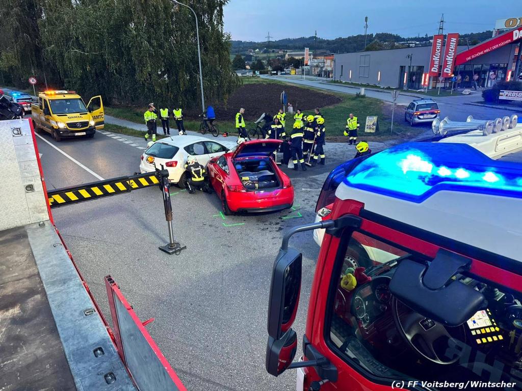 VOITSBERG, am 21.10.2023 Im Gemeindegebiet Rosental Nähe McDonalds ereignete sich in den Nachmittagsstunden des 21. Oktober 2023 ein Verkehrsunfall. Die FF Voitsberg wurde seitens der einsatzleitenden FF Rosental zwecks Unterstützung nachalarmiert.
