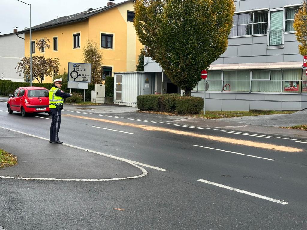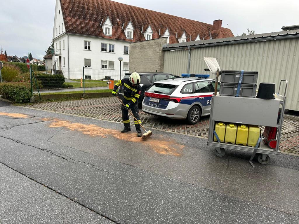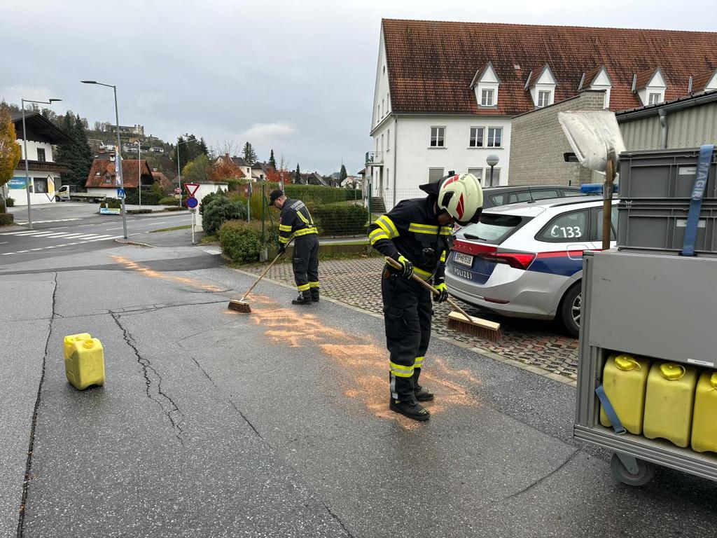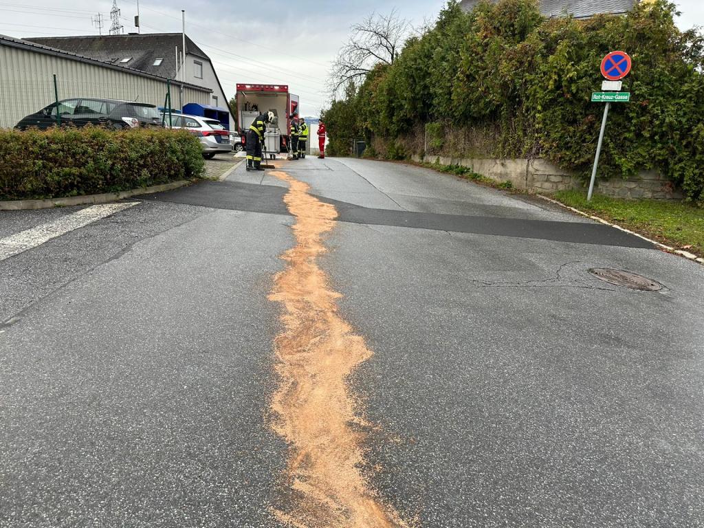 Eine ca. 30 Meter lange Ölspur, welche sich vom Rot-Kreuz-Weg bis in die Conrad-von-Hötzendorf-Straße erstreckte, wurde mittels Ölbindemittel gebunden, aufgesaugt und fachgerecht entsorgt.