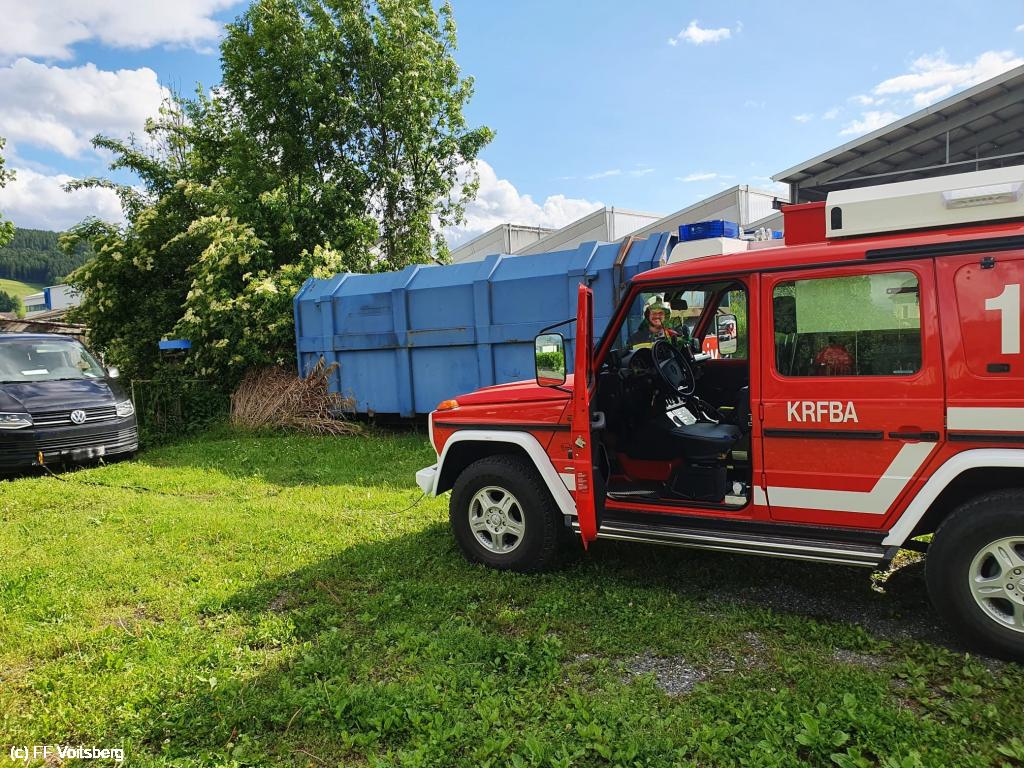 VOITSBERG, am 17.05.2024 Ein in einer Wiese festgefahrener Kleinbus wurde mittels Seilwinde des KRFBA geborgen und setzte Fahrt auf eigener Achse fort.