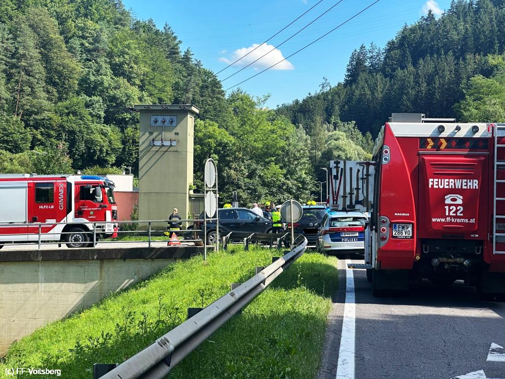 VOITSBERG, am 05.07.2024 Die Feuerwehren Gaisfeld, Krems und Voitsberg wurden am 05.07.2024 um 15:35 Uhr zu einem Verkehrsunfall mit 3 Fahrzeugen auf der B70 in den Kremser Reihen alarmiert. Das ersteintreffende Fahrzeug der FF Gaisfeld konnte rasch Entwarnung geben. Die Personen waren entgegen der Notrufmeldung nicht im Fahrzeug eingeklemmt. Unsere Aufgabe war die Absicherung der Unfallstelle und anschließend Bereitschaft am Einsatzort.