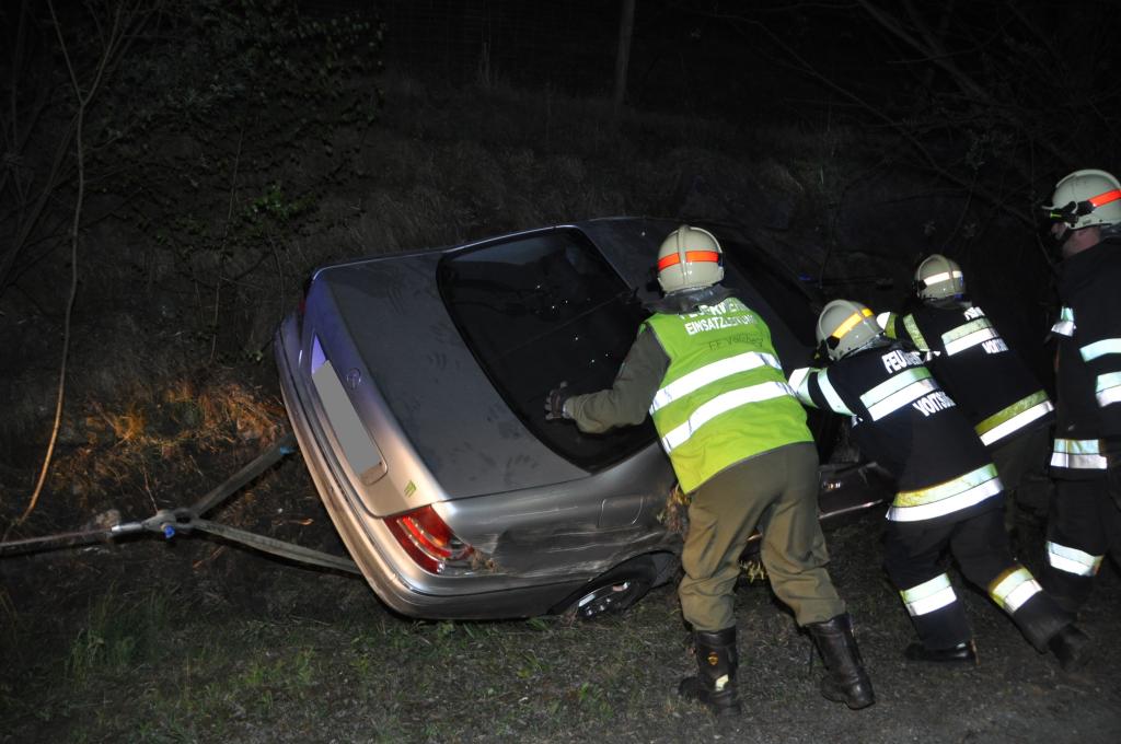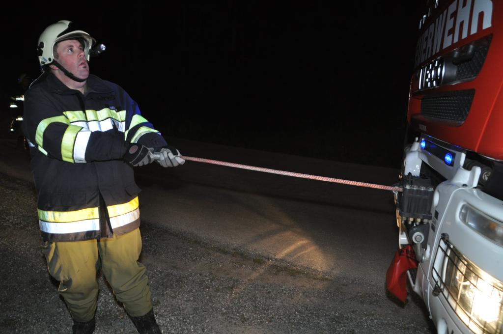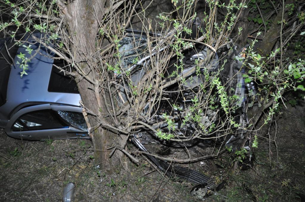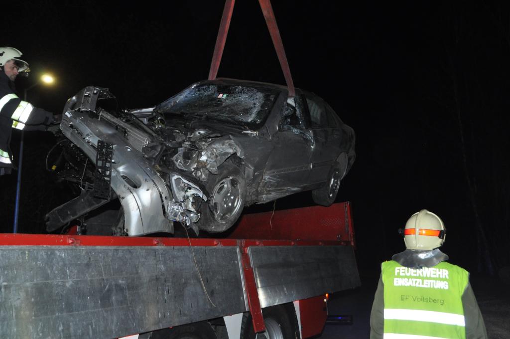 VOITSBERG, am 29.04.2015 Ein aus Tregist kommender PKW musste nach Angaben des Fahrzeuglenkers ein Reh ausweichen, verriss den PKW, kam von der Straße in einer Rechtskurve links ab und prallte frontal gegen einen Baum und beschädigte die rechte Seite des PKW sehr stark. Er konnte sich wie durch ein Wunder fast unverletzt aus dem Wrack befreien. Beim Aufprall traten Schmier- und Treibstoffe aus und wurden mittels Bindemittel gebunden und fachgerecht entsorgt. Während der gesamten Bergearbeiten wurde ein einfacher Brandschutz aufgebaut. Die Bergung erfolgte mit dem WLF-Kran mit Seilwinde. Die Polizei Voitsberg führte Vorort Erhebungen durch. Das ebenfalls anwesende Rote Kreuz versorgte den Leichtverletzten.