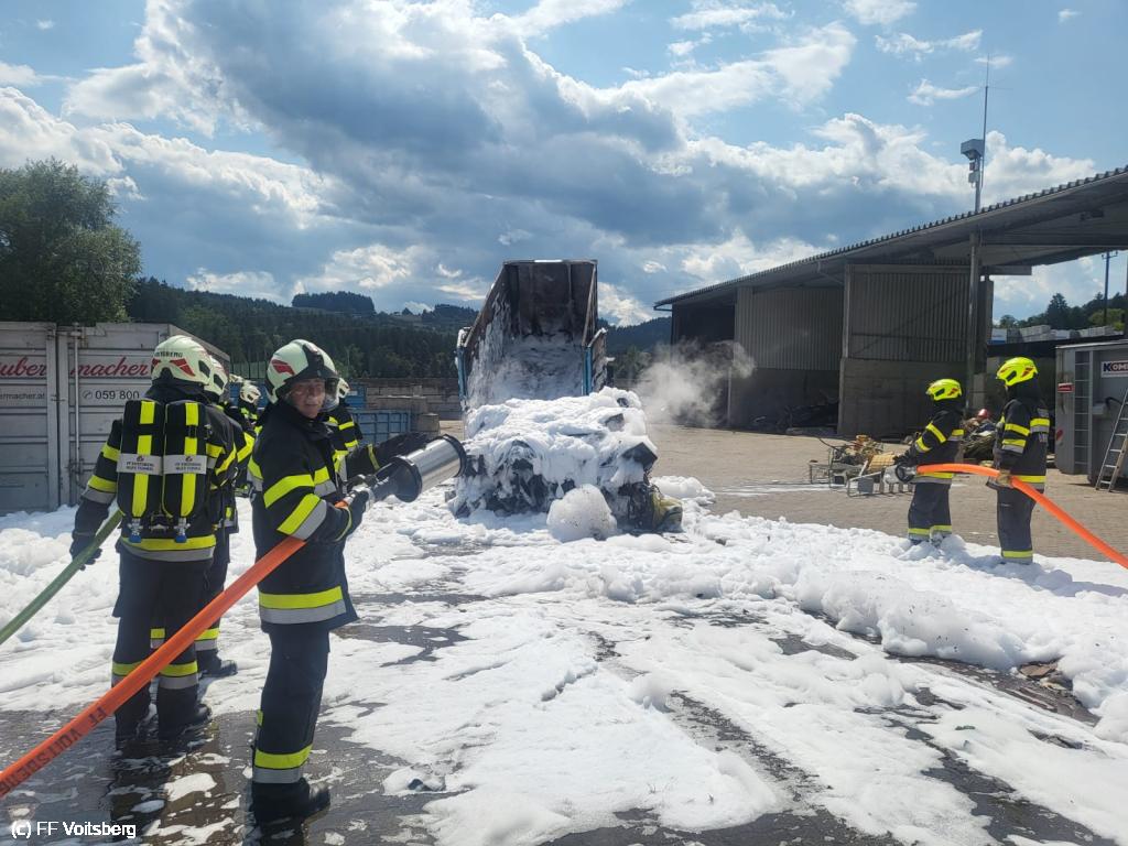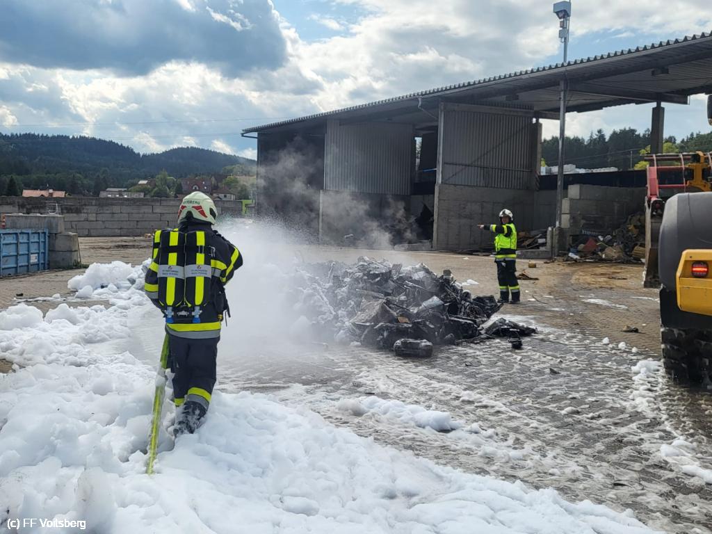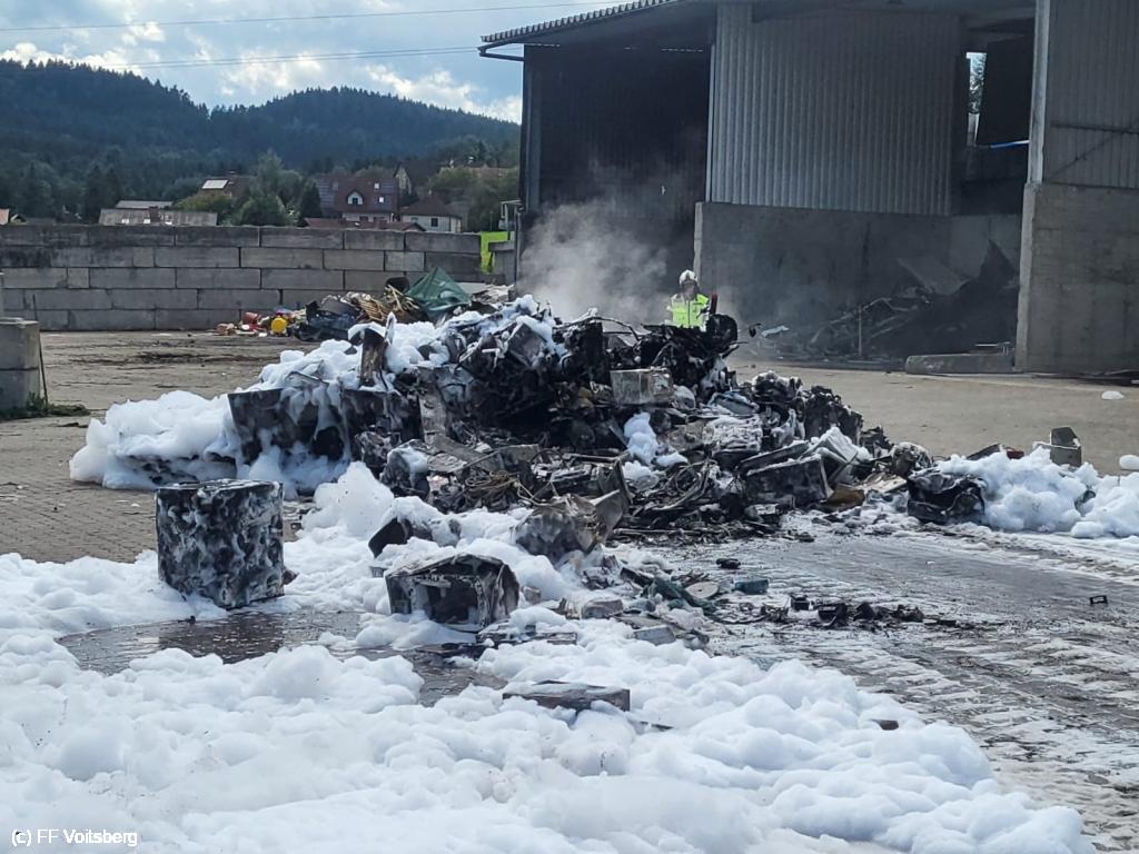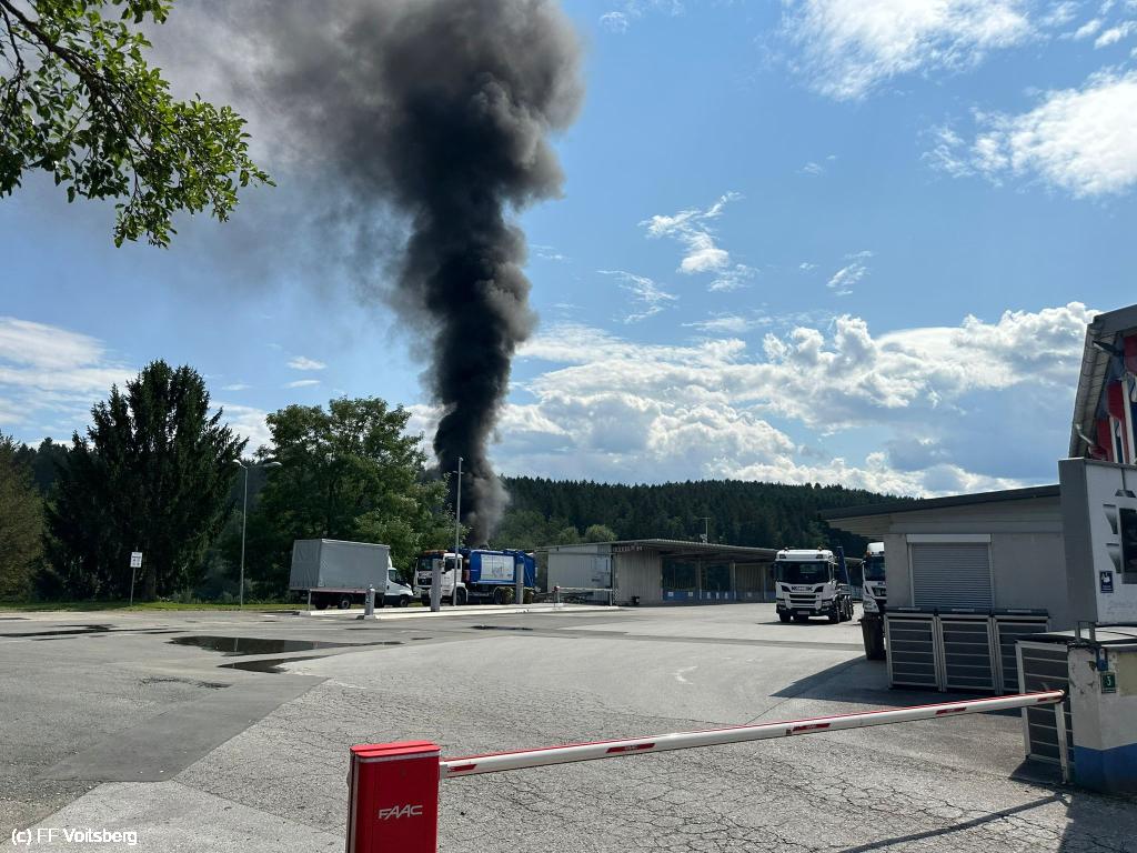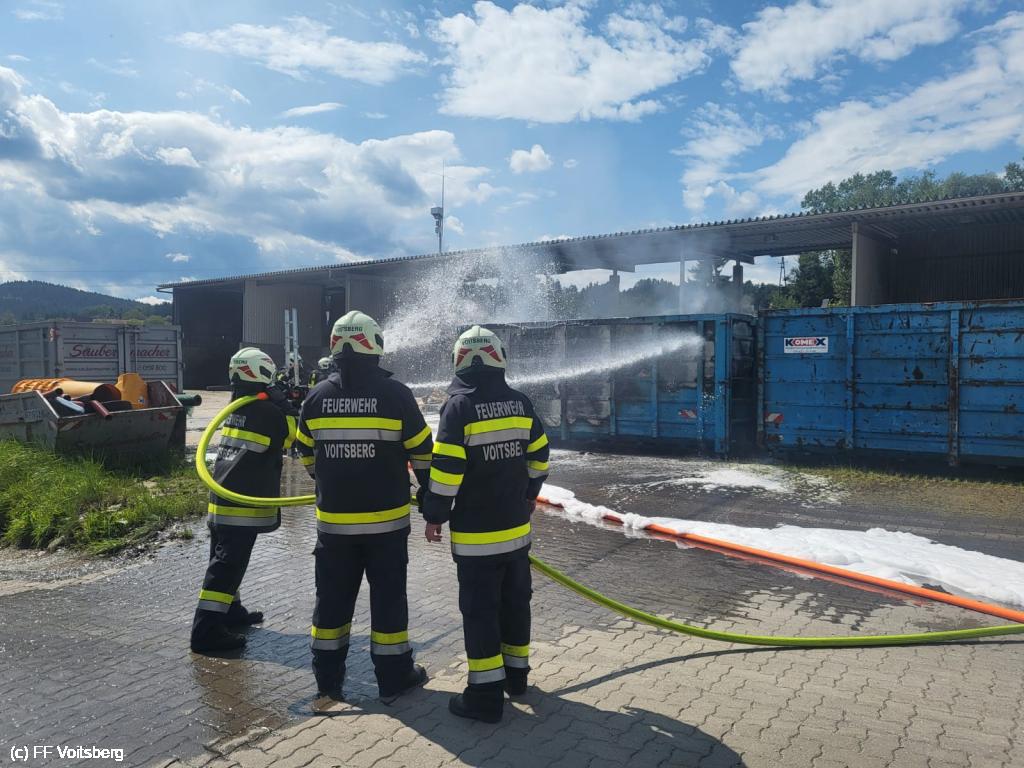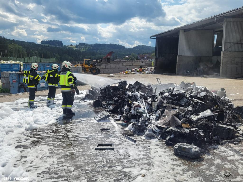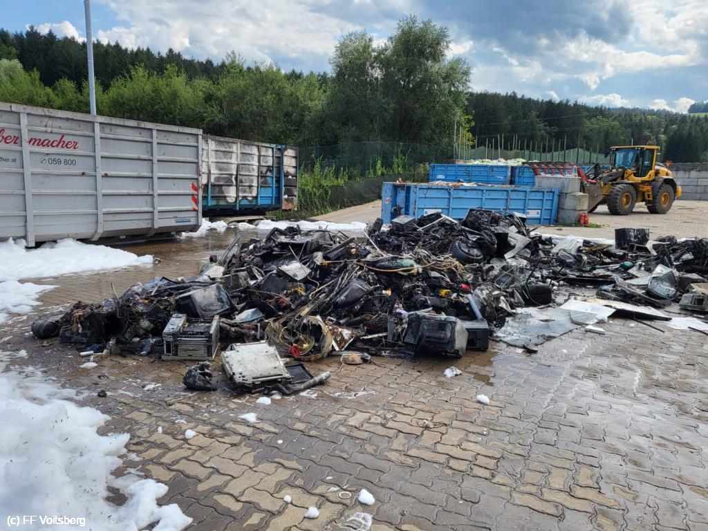 Ein mit Elektroschrott beladener Groß-Container geriet aus ungeklärter Ursache in den frühen Nachmittagsstunden des 3. August 2024 auf einem Platz eines Voitsberger Abfallbetriebes in Brand und griff auf den gesamten Container über.