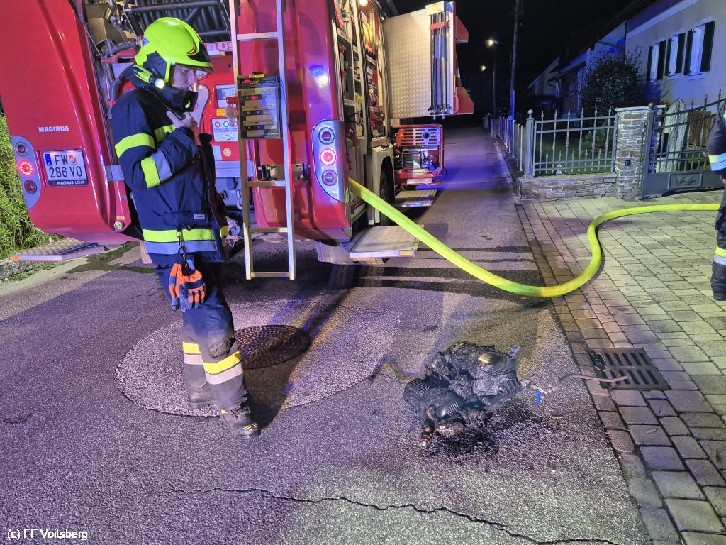 VOITSBERG, am 30.09.2024 Am 30.09.2024 um 02:49 Uhr ertönten die Sirenen über dem Voitsberger Stadtgebiet. Wir wurden gemeinsam mit der FF Krems zu einem Kellerbrand alarmiert. Im Keller eines Einfamilienhauses geriet ein Elektrogerät aus ungeklärter Ursache in Brand und führte zu einer starken Verqualmung der Räumlichkeiten. Ein Atemschutztrupp der FF Krems konnte den Brand rasch eindämmen und das betroffene Gerät ins Freie bringen. Wir stellten den Atemschutzrettungstrupp und waren mit 2 Fahrzeugen und 13 Mitgliedern als Reserve am Einsatzort.