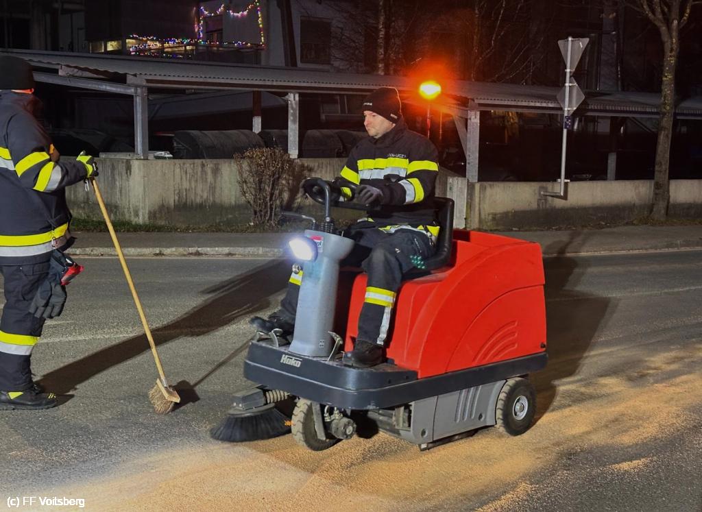 Aufgebrachte Bindemittel wurden mit der feuerwehreigenen Kehrmaschine der FF Voitsberg wieder aufgesaugt und fachgerecht entsorgt.