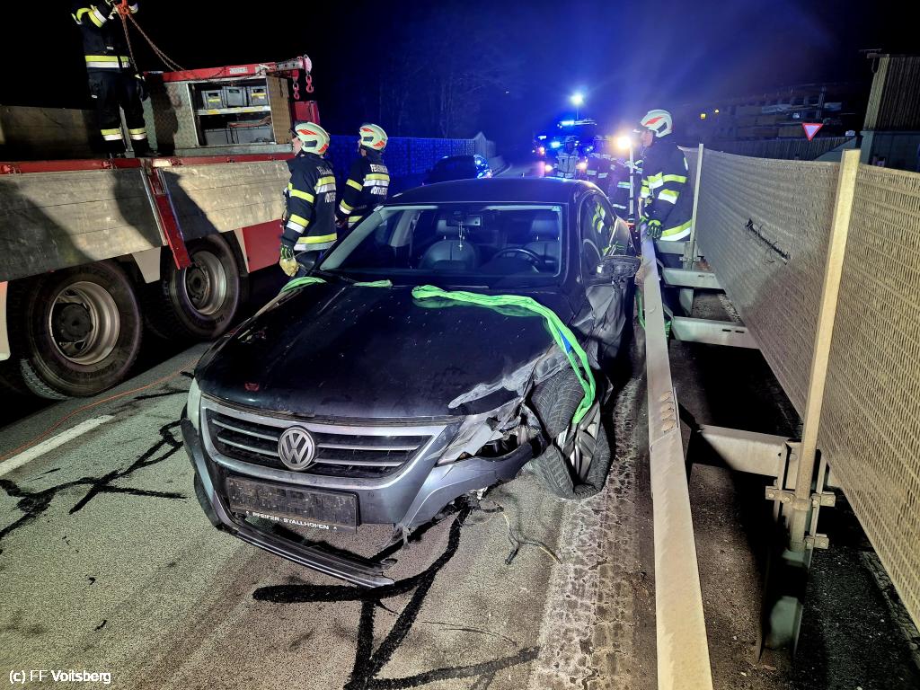 VOITSBERG, am 02.02.2025 Aus ungeklärter Ursache fuhr ein PKW Lenker in den Abendstunden des 02.02.2025 mit seinem Fahrzeug auf der B70 auf den Beginn einer Leitschiene auf und kam erst nach rund 100 Metern auf der Überholspur zum Stillstand.