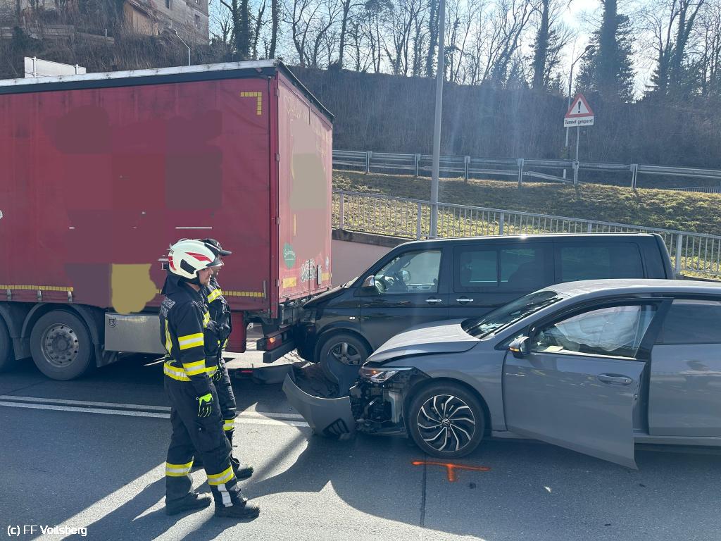 Vor der Unterflurtrasse Voitsberg kam es zu einem Auffahrunfall in den zwei PKW und ein LKW verwickelt waren.