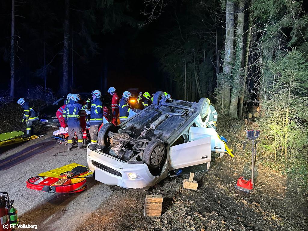 Eine PKW Lenkerin kam mit ihrem Fahrzeug aus ungeklärter Ursache von der Fahrbahn ab. Das Fahrzeug überschlug sich und blieb auf dem Dach liegen. Nachkommende Autofahrer wählten umgehend den Notruf.