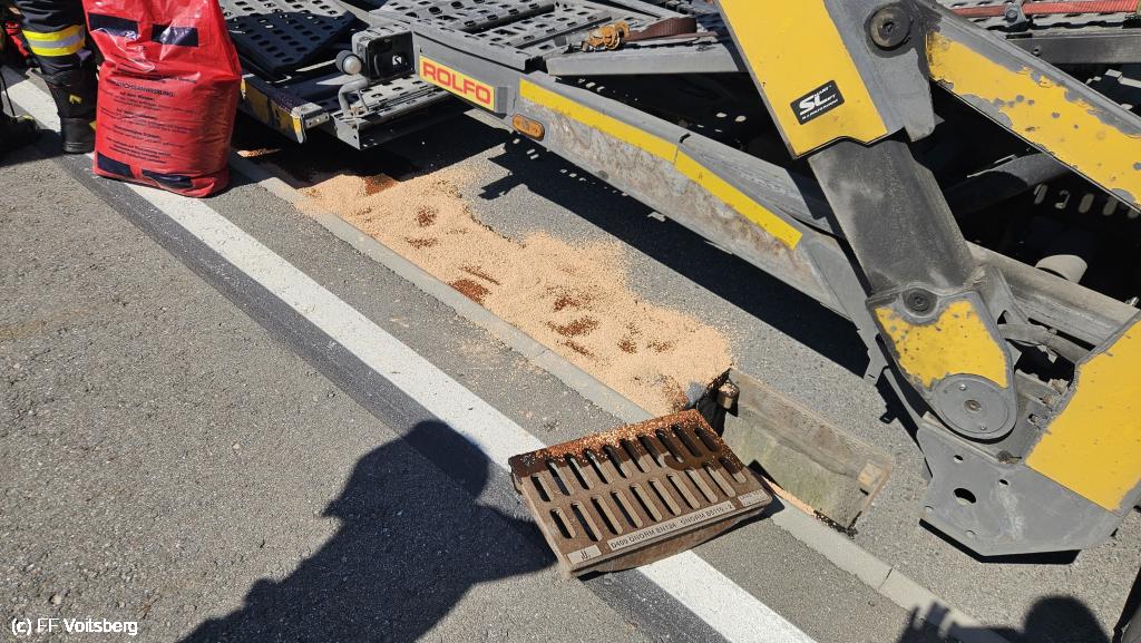 Nach einem technischen Defekt bei einem Sattelauflieger gerieten ca. 50 Liter Hydrauliköl auf die Fahrbahn, welche mittels Ölbindemittel gebunden wurden.