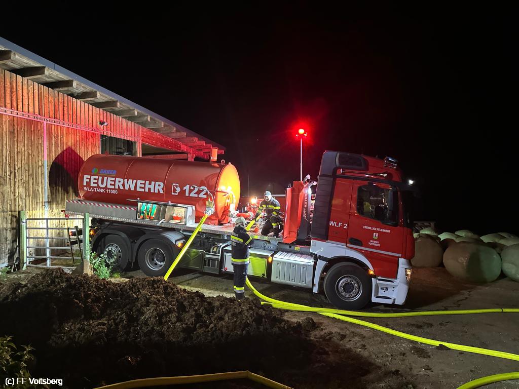 12 Kameradinnen und Kameraden waren bis in die Mittagsstunden im Einsatz. Aufgrund der exponierten Lage und der Löschwasserknappheit wurde auch erstmalig der 11000 Liter Tankcontainer eingesetzt.