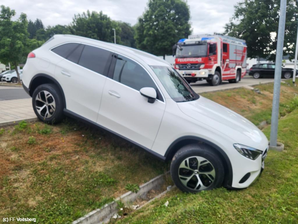 Ein PKW geriet gegen 08:45 Uhr aus ungeklärter Ursache in den Graben eines Supermarktparkplatzes und blieb dort hängen.