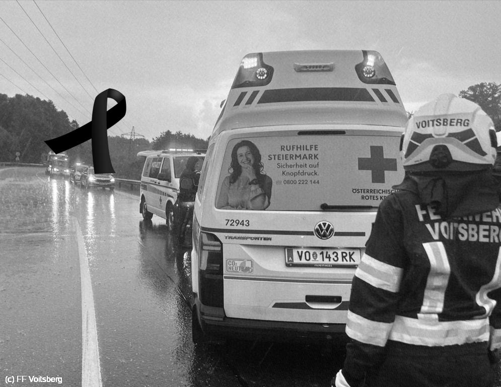 Eine junge Lenkerin hatte im Starkegen die Kontrolle über ihr Fahrzeug verloren und kam zu Sturz. Sie wurde mit dem Notarzt ins Krankenhaus eingeliefert, wo sie den schweren Verletzungen erlag.