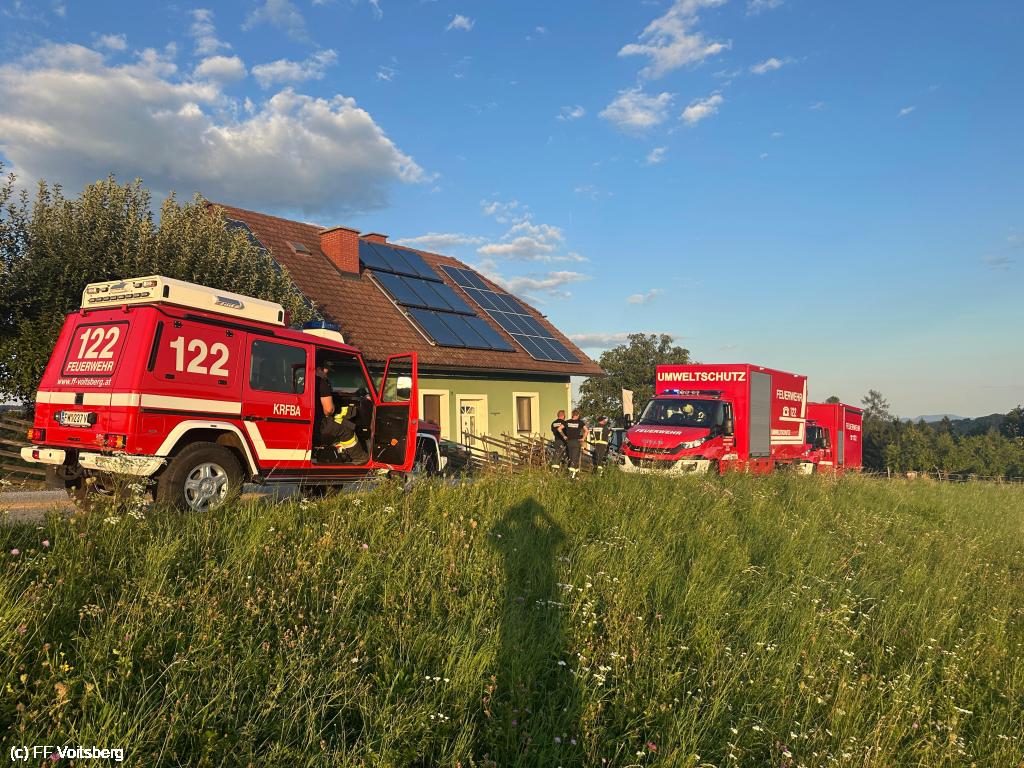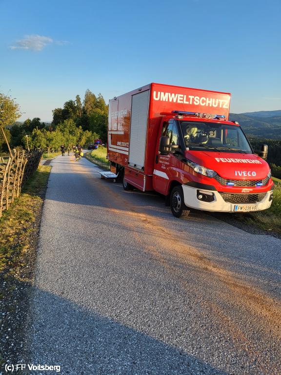 VOITSBERG, am 23.08.2025 Aufgrund eines technischen Defektes an einem Traktor wurde die Lobmingbergstraße auf einer Länge von rund 40 Metern verunreinigt.