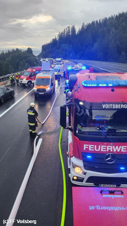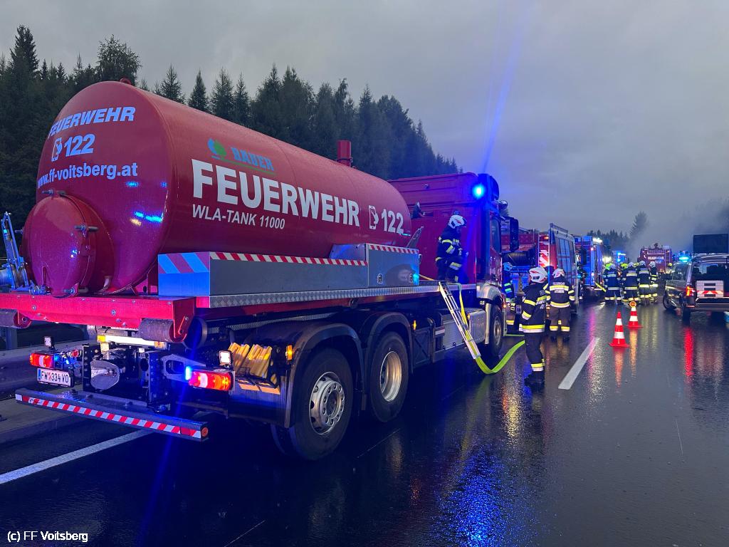 VOITSBERG, am 03.09.2025 LKW Brand auf der Südautobahn