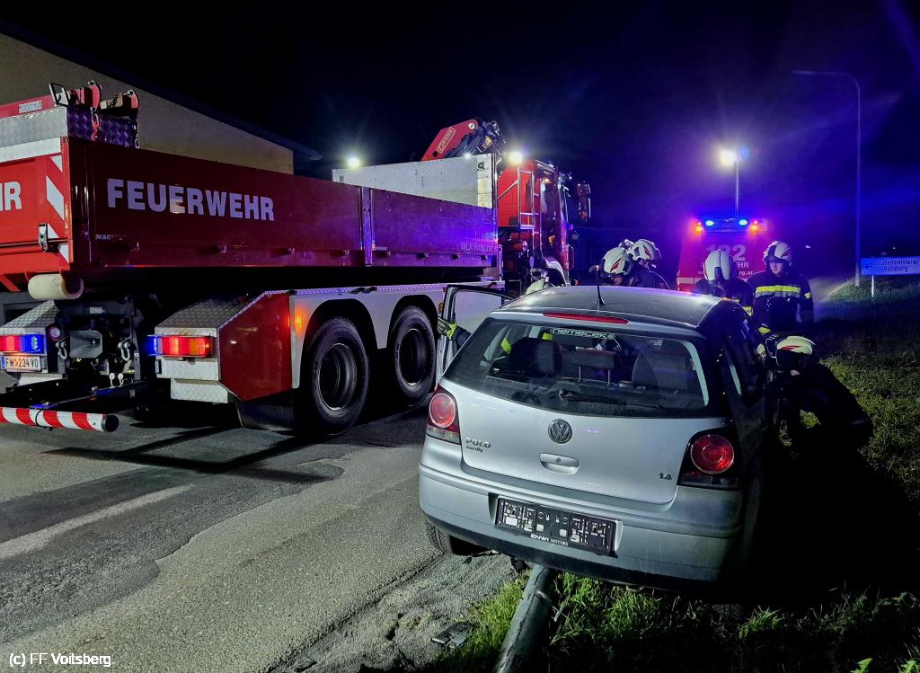 VOITSBERG, am 18.10.2025 Am 17. Oktober 2025 kurz nach 23:30 Uhr wurden wir gemeinsam mit der Polizei und dem Roten Kreuz zu einem Verkehrsunfall alarmiert.