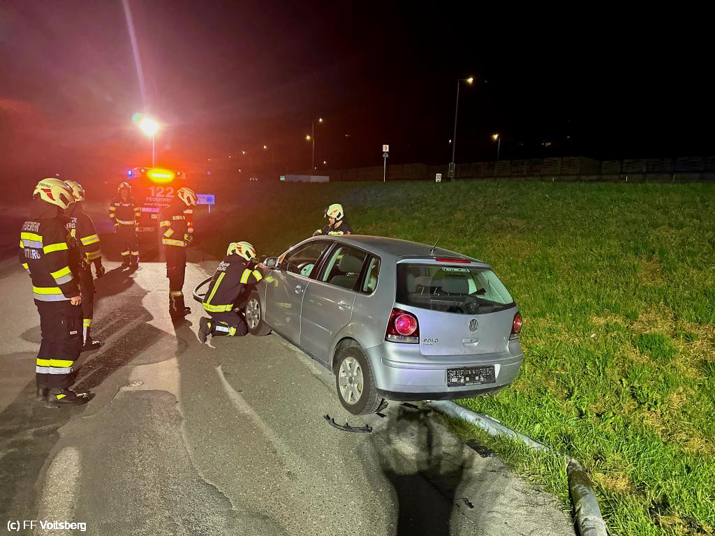 Die beiden Fahrzeuginsassen wurden vom Rettungsdienst betreut, blieben jedoch unverletzt. Am Fahrzeug entstand erheblicher Sachschaden.