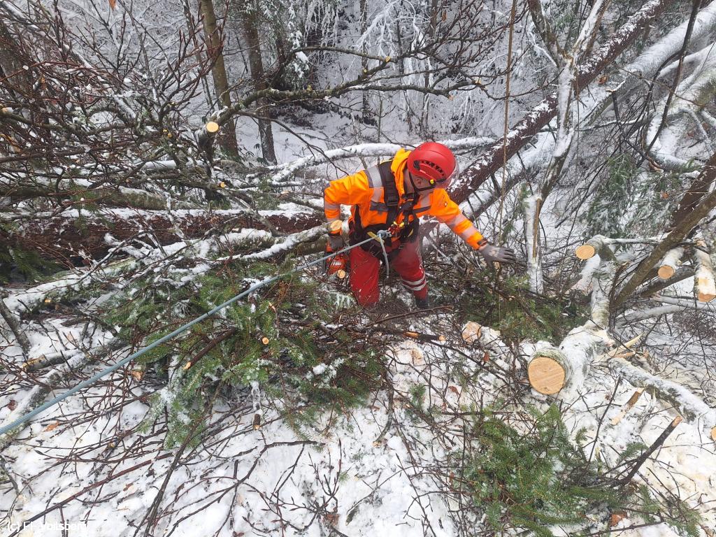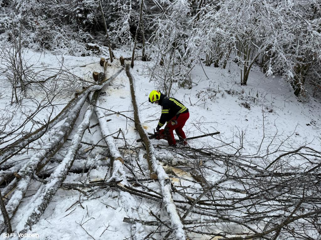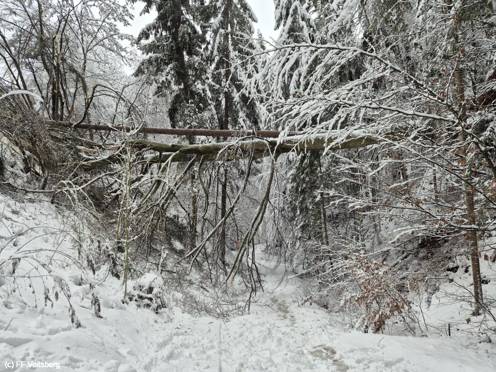 VOITSBERG, am 25.12.2025 Am heutigen Christtag beschäftigten uns mehrere umgestürzte Bäume im Ortstteil Tregist. Ein Wohnhaus "Am Alststeig" war von der Außenwelt abgeschnitten und konnte nur über einen längeren Fußmarsch erreicht werden.