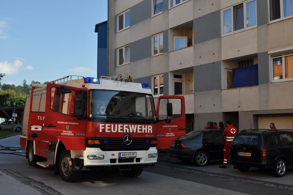 VOITSBERG, am 02.10.2013 Die Feuerwehren Voitsberg und Krems wurden von Florian Steiermark laut Alarmplan zu einem Wohnungsbrand in einem Mehrfamilienhaus alarmiert. Bei Eintreffen stellte der Einsatzleiter fest, dass sich keine Personen in der qualmenden Wohnung befanden. Zwei Atemschutztrupps konnten den Wohnungsbrand mit geringem Wasseraufwand rasch unter Kontrolle bringen. Die sich im Haus befindlichen Personen wurden zwecks starker Rauchentwicklung aus dem Haus evakuiert. Mit zwei Druckbelüftern wurde das Stiegenhaus und die Wohnung rauchfrei gemacht. Abschließend wurden noch die ausgebrannten Einrichtungsgegenstände aus der Wohnung entfernt. Die Polizeiinspektion Voitsberg führt die Brandermittlung durch und das Rote Kreuz Voitsberg war am Einsatzort als Reserve anwesend.