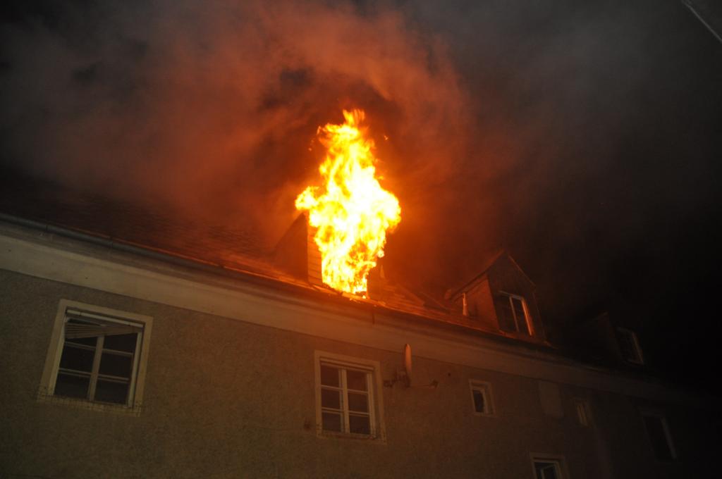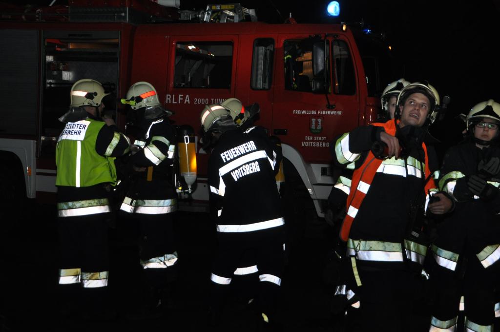 VOITSBERG, am 17.12.2015 Aus bisher unbekannter Ursache brach in einer Wohnung in einem Mehrparteienhaus ein Brand aus und griff sofort auf das Inventar über. Bei Eintreffen der Feuerwehren schlugen meterhohe Flammen aus der im 2. Stock gelegenen Wohnung und drohten auf andere Gebäudeteile und auf ein angrenzendes Wohnhaus überzugreifen. Durch einen Innenangriff von fünf Atemschutztrupps und dem Kühlen des Nachbarobjektes konnte der Brand gelöscht und noch größerer Schaden verhindert werden. Die im Haus wohnenden Personen wurden während der Löscharbeiten im MTF Voitsberg versorgt. Ein Hund konnte aus dem verrauchten Objekt unversehrt gerettet und dem Besitzer übergeben werden. Mittels Drehleiter wurde seitens des Einsatzleiters die Dachkonstruktion kontrolliert. Zur vollständigen Brandbekämpfung mussten eine Dachgaupe sowie Teile der Dachkonstruktion geöffnet werden. Die Brandermittlungen wurden durch die Polizei Voitsberg durchgeführt. Das Rote Kreuz Voitsberg musste eine Person mit einer Rauchgasvergiftung ins LKH Voitsberg überstellen. Insgesamt fünf Feuerwehren mit 83 Mann und 14 Fahrzeugen waren im Einsatz. Einsatzleiter waren HBI Ing. Klaus Gehr und BI Ing. Bernd Unger.