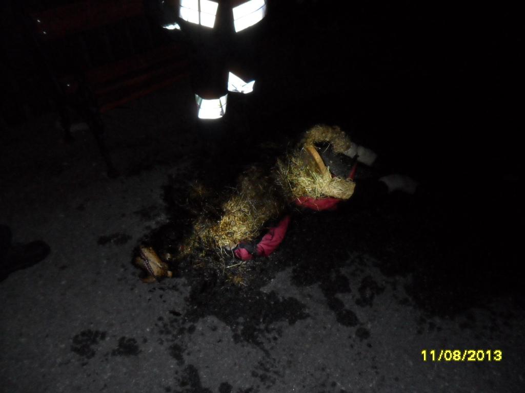VOITSBERG, am 11.08.2013 Im Außenbereich des Einganges eines Altenpflegeheimes in Voitsberg wurde in den späten Abendstunden des 11. August 2013 ein auf einer Bank sitzendes Strohpuppenpaar in Brand gesetzt. Durch ein offenes Fenster drang Rauch in den Innenbereich des Pflegeheimes und löste durch den Rauchmelder Feueralarm aus. Florian Steiermark alarmierte die FF Voitsberg, welche am Einsatzort einen Drucklüfter zwecks Rauchabzug in Einsatz brachte und notwendige Sicherungsmaßnahmen durchführte. Die polizeilichen Erhebungen wurden durch die PI Voitsberg durchgeführt. Verletzt wurde niemand.