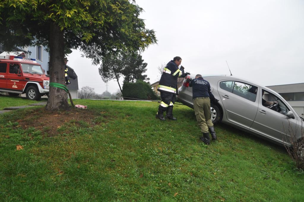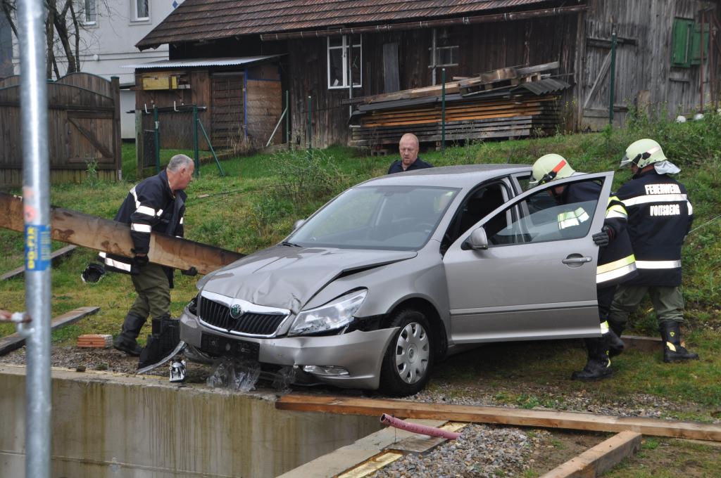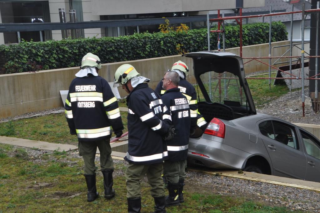 VOITSBERG, am 13.11.2014 Aus ungeklärter Ursache machte sich ein PKW selbständig und rollte über eine Wiese bergab und landete in einem leeren Swimmingpool. Verletzt wurde niemand. Die FF Voitsberg führte die Bergung mittels Umlenkrolle und Seilwinde mit dem KRFB durch. Das beschädigte Fahrzeug wurde auf einem Parkplatz abgestellt.